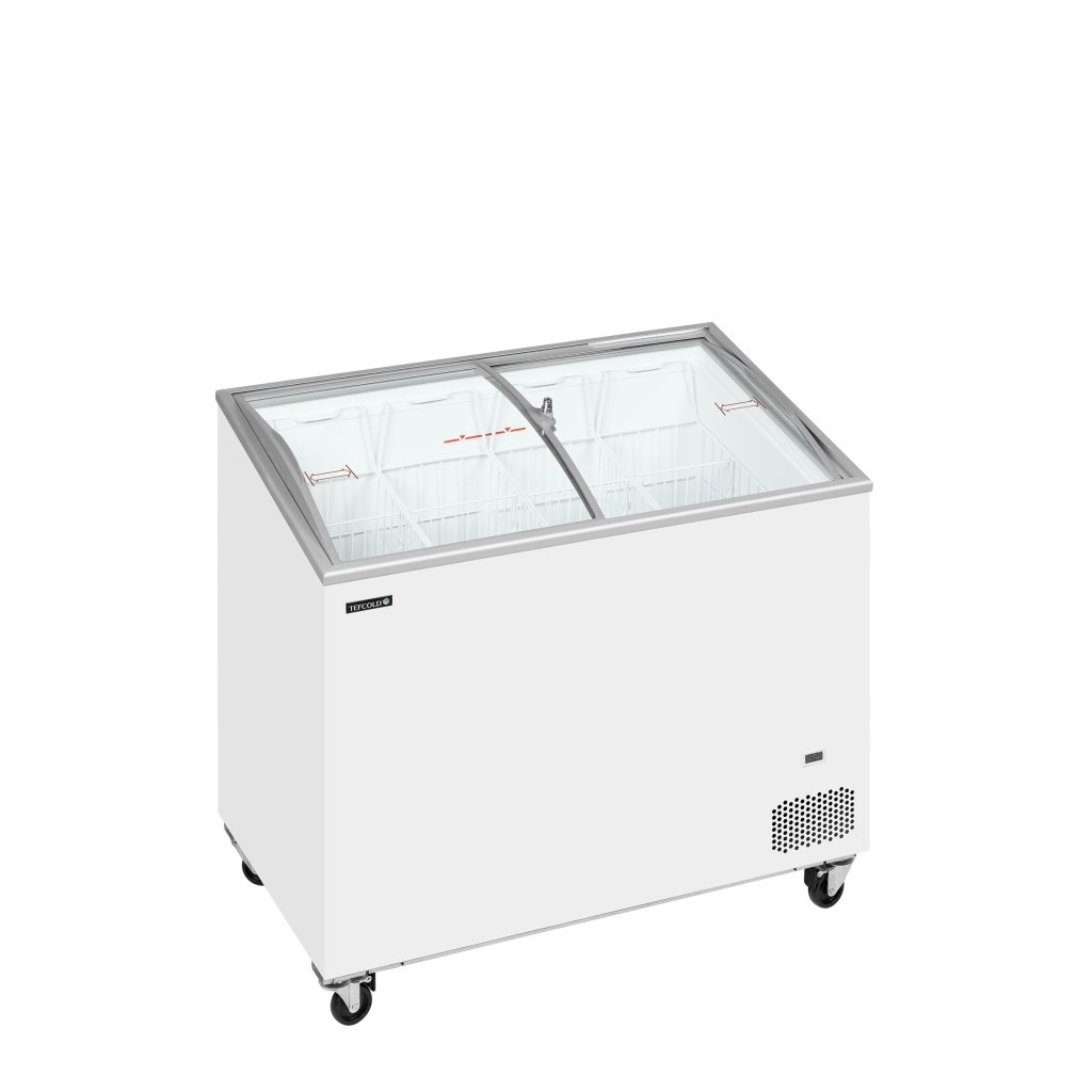 Pultová mraznička s proskleným oblým víkem Standardní řada pultových mrazniček IC-SCEB nabízí stabilní a spolehlivě konstruované zařízení za příznivou cenu. Je skvělou volbou pro začínající podniky, sezónní prodej apod. Dodává se s oblými prosklenými posuvnými víky pro lepší viditelnost produktů a s kompletní sadou košů (kromě nejmenšího modelu), připravených k naplnění lahodnou zmrzlinou. Za účelem snadné manipulace je mraznička vybavena robustními kolečky pro vysokou zátěž.Doplňkové parametry