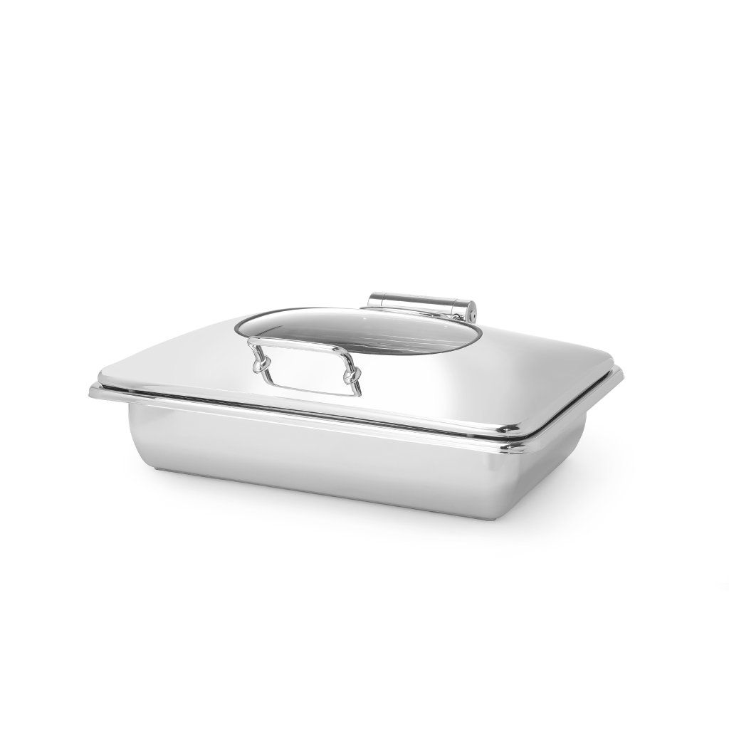 Velmi robustní konstrukce. Pouzdro z vysoce leštěné nerezové oceli o tloušťce 0,8 mm. Vnitřní nádoba na potraviny GN 1/1 o tloušťce 0,6 mm (rozměry: 530 x 325 x 65 mm, objem: 9 l). Výklopné, plné víko s mechanismem volného pádu a odvzdušňovacím ventilem. Uzamykací mechanismus víka. Víko snadno odnímatelné bez použití nářadí. Patent Dripless: speciálně tvarovaný žlábek ve zvedacím víku zabraňující odkapávání kondenzátu na stůl. Silné sendvičové dno kapsle (nerezová ocel/hliník/chromová ocel) kombinující vlastnosti hliníku pro rozvod tepla.Buďte první, kdo napíše příspěvek k této položce.