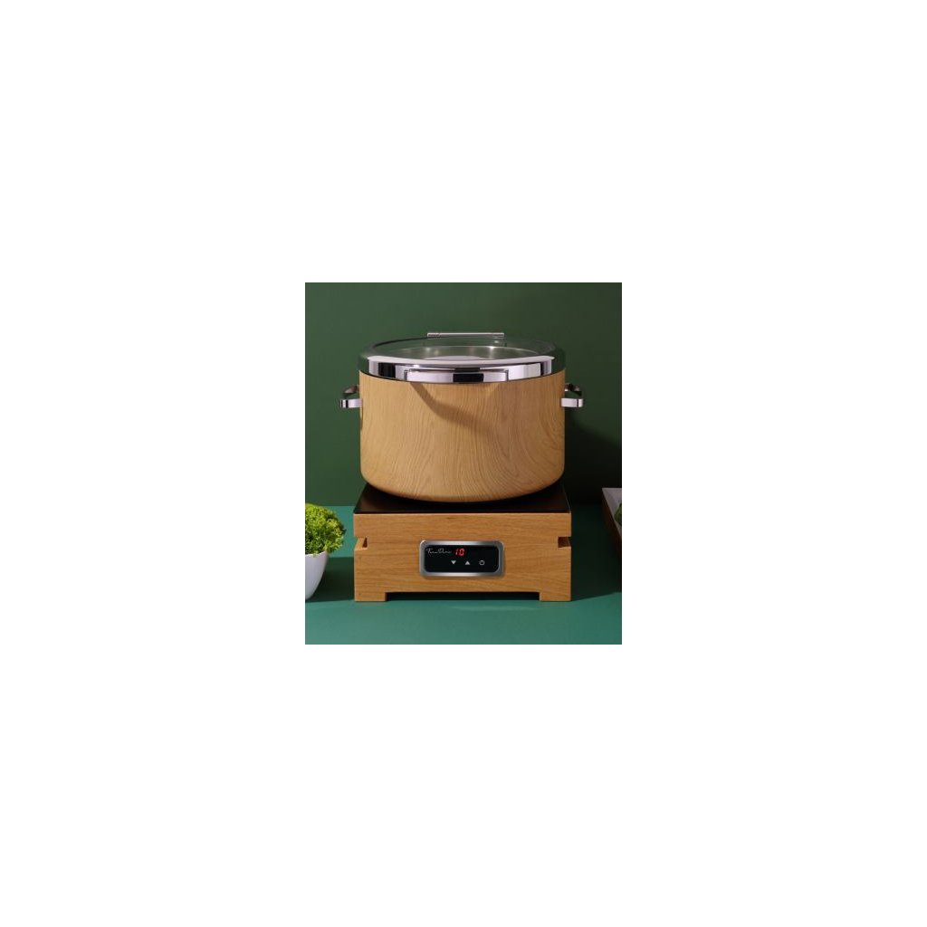 - Silné sendvičové dno kapsle kombinuje výhody různých kovů pro rovnoměrné rozložení tepla a kompatibilitu s různými zdroji tepla, včetně indukčních varných desek.