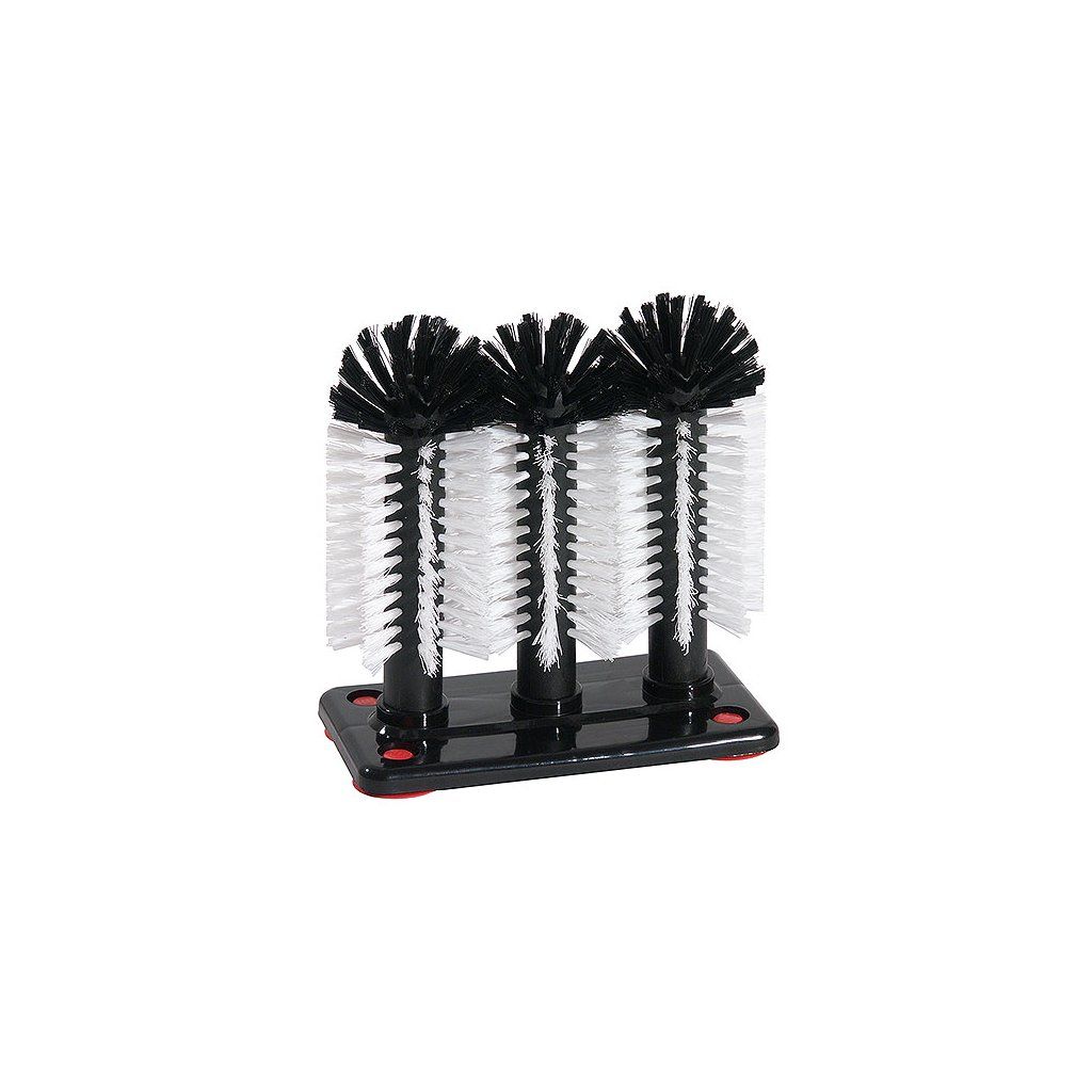 Tři kartáče vyrobené z polypropylénu jsou připevněné na pevném plastovém podstavci o rozměrech 190x100 mm černé barvy se čtyřmi nožkami.