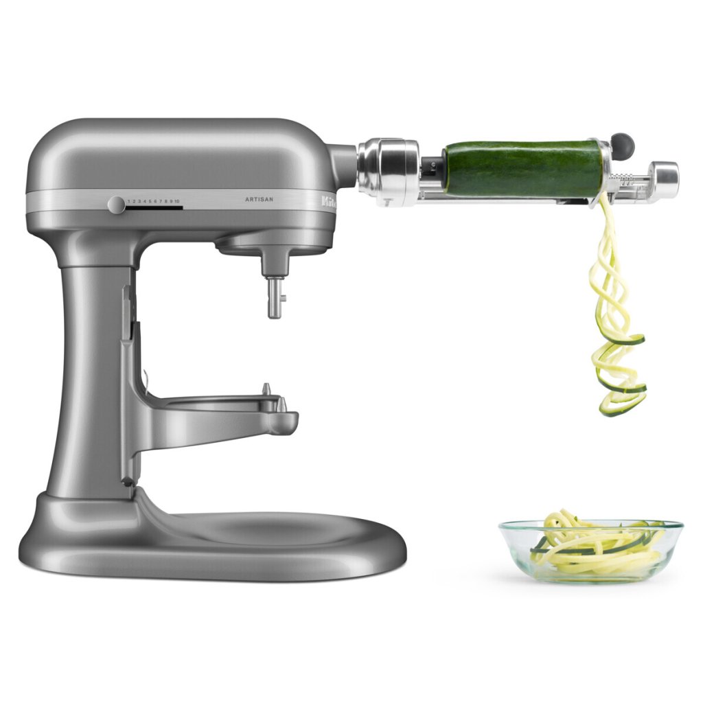 K jeho standardnímu vybavení patří kovová šlehací metla s 6 dráty (5KSMBL6W), spirálový hnětací hák (5KSMBLSD) a plochý šlehač (5KSMBLSF) se stříbrným nepřilnavým nylonovým povrchem, nalévací štít s bezpečným dosednutím (5KSMBLPS).