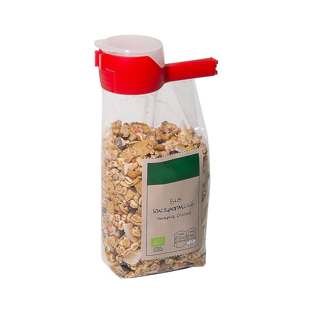 Klip na láhev s těsnícím víkem pro pohodlné dávkování a udržení potravin déle čerstvých. Vhodný do myčky.Doplňkové parametry