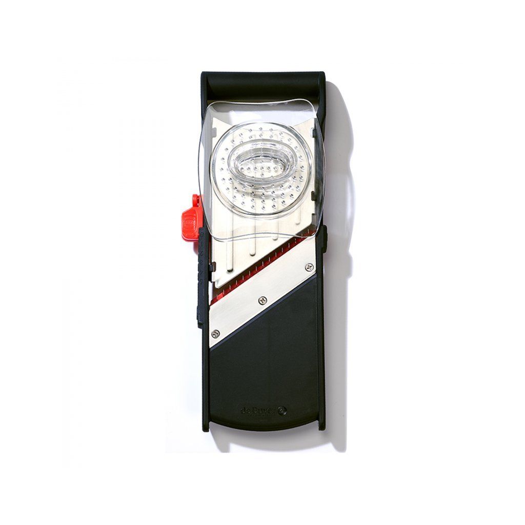 Komi japonská mandolína se pyšní přesnou a účinnou ostrou čepelí pod úhlem 35°pro snadnější krájení. Umožňuje krájení klasických plátků i julienne plátků o 2 a 4 mm. Velmi rychle a přesně nastavíte tloušťku řezu po 1 mm a také tloušťku čepele lze od 0 do 5 mm. Tento šikovný kráječ se vyrábí z nerezové oceli a je vybavený ergonomickým ochranným krytem z průhledného plastu sloužícím pro bezpečnější manipulaci. Čepele lze uložit do plastového pouzdra umístěného na spodní straně mandolíny. Využijete ji pro krájení ovoce či zeleniny.Čepele se doporučuje čistit pouze ručně, ale mandolínový rám lze také mýt i v myčce nádobí.Mandolína japonská