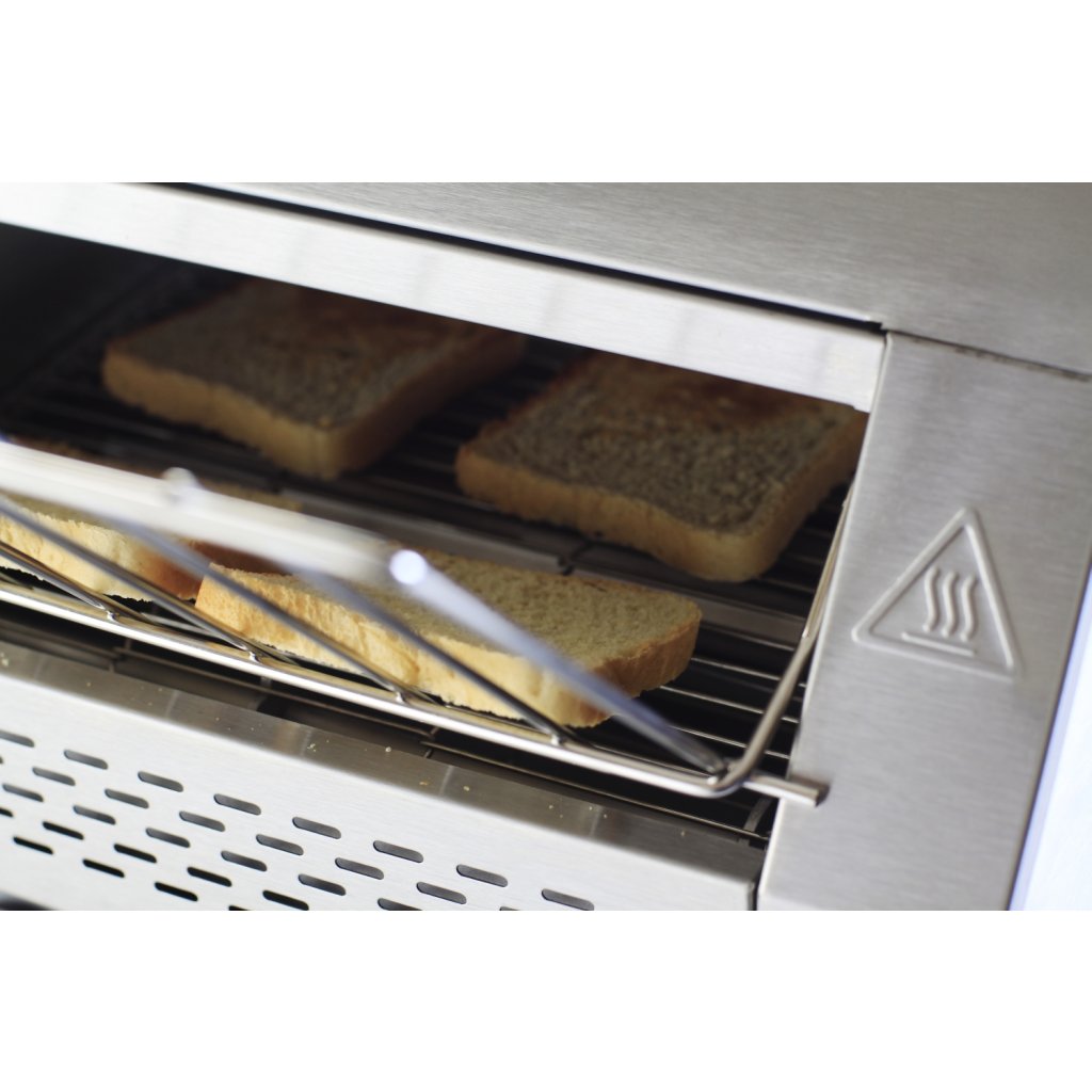 Dvě samostatná topná tělesa. Vhodné pro kontinuální opékaní nakrájeného chleba. Přední a zadní tác. Regulace rychlosti opékání.Doplňkové parametry