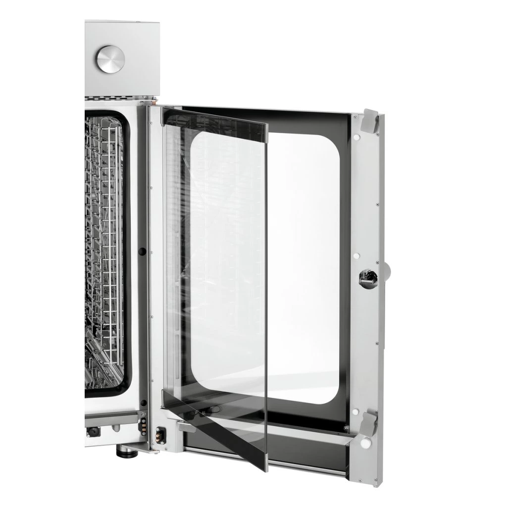 Díky podélným vodicím lištám je model Silversteam-K 10110D mimořádně kompaktní a vejde se i do menších kuchyní. Intuitivní digitální ovládání s funkcí Rack Control a kvalitní cirkulací vzduchu umožňuje přípravu jídel v gastronádobách GN 1/1 pomocí páry, vaření i pečení.