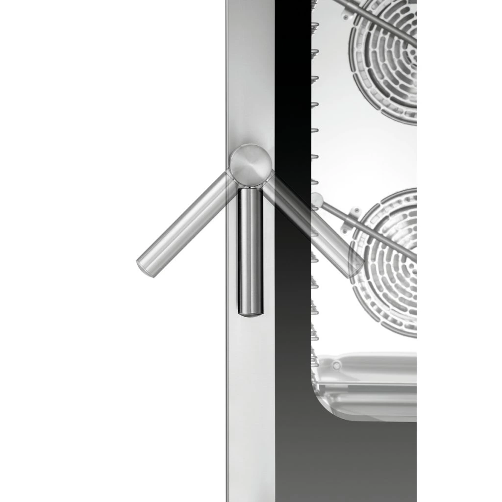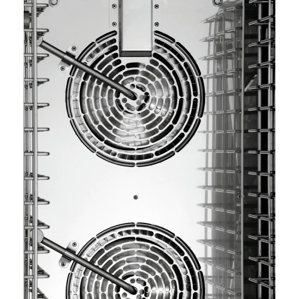 Díky podélným vsuvům je model Silversteam-K 10110DRS mimořádně kompaktní a vhodný i do menších kuchyní. Intuitivní digitální ovládání s funkcí Rack Control, kvalitní cirkulace vzduchu a integrovaný čisticí systém umožňují profesionální vaření, pečení i přípravu v páře v nádobách GN 1/1.