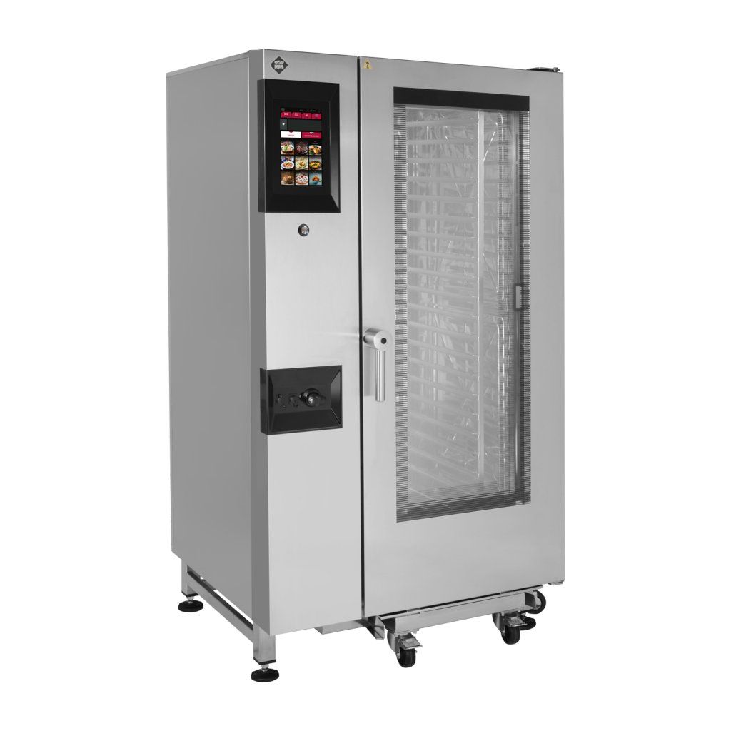 Sap kód: 00038577; Šířka netto [mm]: 995; Hloubka netto [mm]: 835; Výška netto [mm]: 1850; Hmotnost netto [kg]: 260.00; Šířka brutto [mm]: 1150; Hloubka brutto [mm]: 1050; Výška brutto [mm]: 2100; Hmotnost brutto [kg]: 290.00; Typ spotřebiče: Elektrické zařízení; Příkon elektrický [kW]: 28.300; Napájení: 400 V / 3N - 50 Hz; Materiál: AISI 304; Vnější barva zařízení: Nerezové; Nastavitelné nožičky: Ano; Řízení vlhkosti: MeteoSystem - regulace na základě přímého měření vlhkosti v komoře (patentováno); Stohovatelnost: Ano; Typ ovládání: Dotykové; Doplňující informace: možnost reverzního otevírání dveří – klika na pravé straně (nutné specifikovat při objednávce); Komínek pro odtah vlhkosti: Ano; Funkce odloženého startu: Ano; Velikost displeje: 10"; Delta T tepelná úprava: Ano; Automatický předehřev: Ano; Automatické zchlazení: Ano; Funkce studeného uzení: Ano; Sjednocené dokončení pokrmů EasyService: Ano; Vaření přes noc: Ano; Mycí systém: uzavřený - efektivní využití vody a mycí chemie opakovaným přečerpáním; Typ mycího prostředku: Tekutý mycí detergent + tekutý oplachový prostředek/ocet nebo mycí tablety; Více úrovňové vaření: Program zásuvů - řízení tepelné úpravy pro každý pokrm zvlášť; Pokročilé nastavení vlhkosti: Steamtuner - 5stupňový systém nastavení nasycení páry řízenou kombinací produkce bojlerem nebo nástřikem ; Nízkoteplotní tepelná úprava: od 30 °C - možnost kynutí; Zastavení ventilátoru: Okamžité při otevření dveří; Typ osvětlení: LED osvětlení ve dveřích, po obou stranách; Materiál a tvar komory: AISI 304, se zaoblenými rohy pro snadné čištění; Reverzibilní ventilátor: Ano; Funkce udržovací skříně: Ano; Materiál tělesa: Incoloy; Sonda: Ano; Sprcha: Ruční navíjecí; Funkce uzení: Ano; Vnitřní osvětlení: Ano; Nízkoteplotní tepelná úprava: Ano; Počet ventilátorů: 2; Počet rychlostí ventilátoru: 24; Počet programů: 1000; USB port: Ano, pro nahrání receptů a aktualizaci firmware; Konstrukce dveří: Odvětrávané bezpečnostní trojité sklo, rozebiratelné pro snadné čištění; Počet přednastavených programů: 100; Počet kroků receptu: 9; Minimální teplota zařízení [°C]: 30; Maximální teplota zařízení [°C]: 300; Typ ohřevu zařízení: Kombinace páry a horkého vzduchu; HACCP: Ano; Počet GN / EN zařízení: 20; Velikost GN / EN zařízení [mm]: GN 1/1; Hloubka GN zařízení [mm]: 65; Funkce regenerace pokrmů: Ano; Průřez vodičů CU [mm²]: 10; Jmenovitý průměr potrubí: DN 50; Přípojka na vodu: 3/4";Buďte první, kdo napíše příspěvek k této položce.