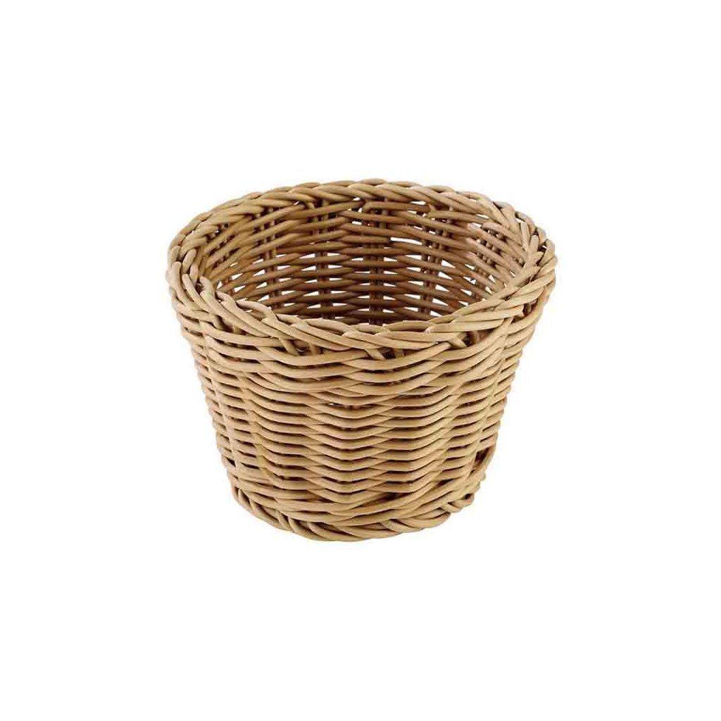 Košík na pečivo vyrobený z polypropylénu imitujícího ratan. Odolný. Může se stohovat a mýt v myčce.Doplňkové parametry