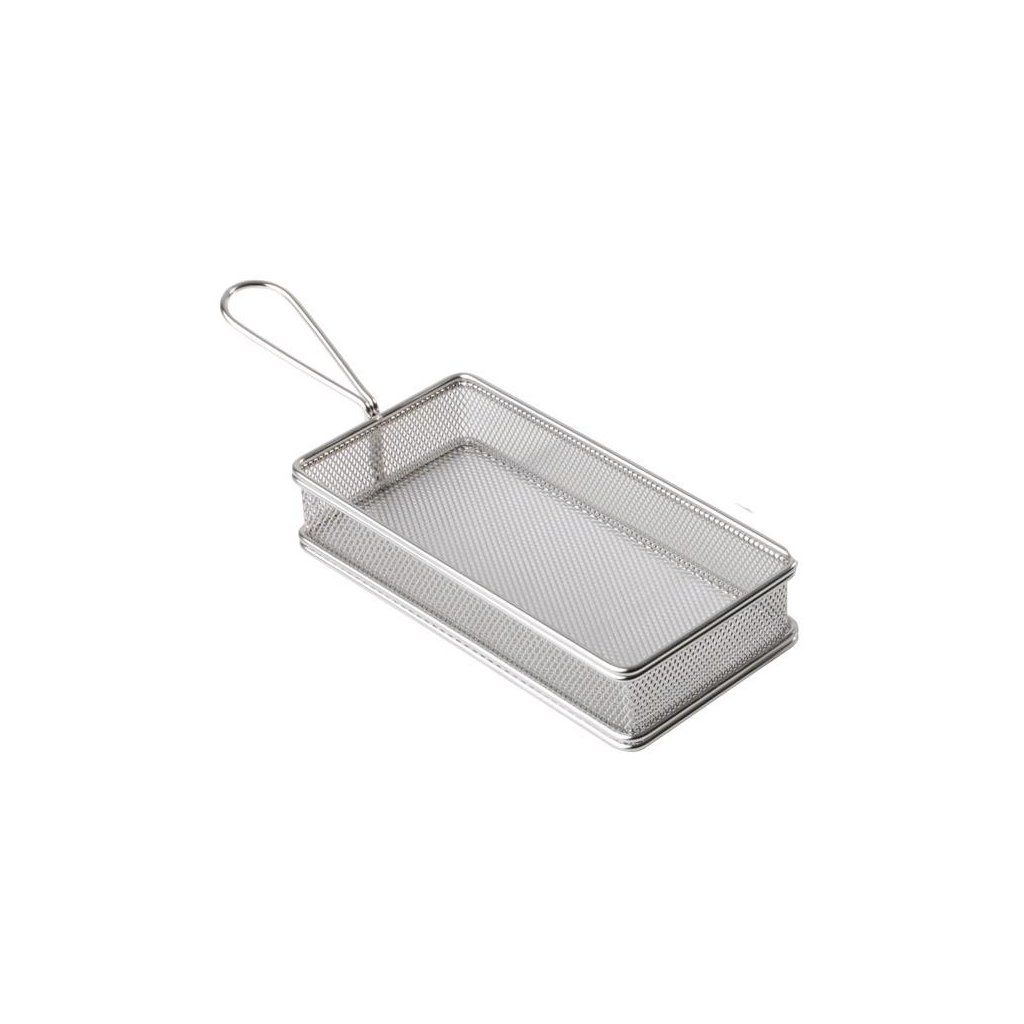 Mini košík z nerezové oceli s úchytem 95 mm. Ideální pro stylové servírování především v restauracích typu fast food. V košíku je možné také smažit. Vhodný do myčky.Doplňkové parametry