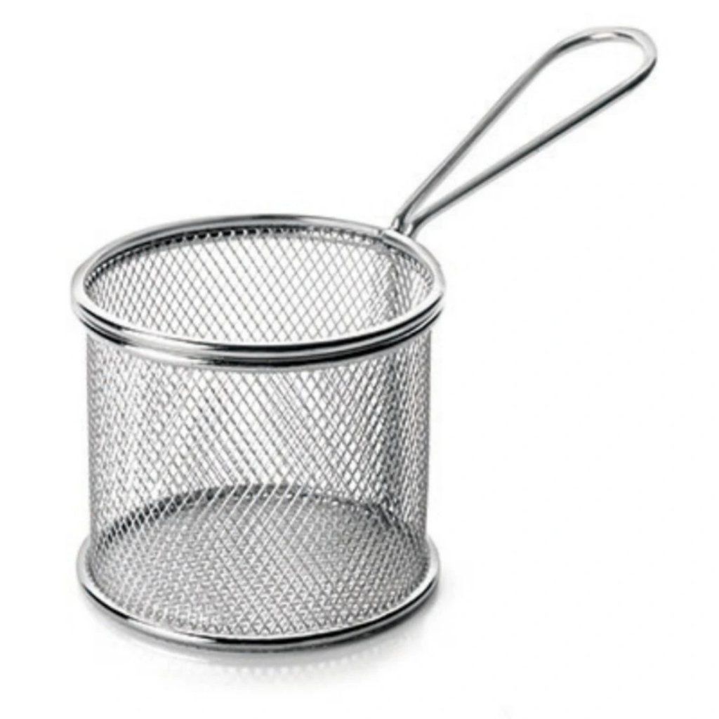 Menší servírovací košík umožňuje smažit malé množství zeleniny, brambor, krevet nebo čehokoliv jiného. Také parádně poslouží k samotné prezentaci pokrmů na jídelním stole. K představování doporučujeme nejprve vložit olejový papír do košíku a až na něj umístit smažené jídlo. Tak dosáhnete jednoduchého a stylového efektu. Košík se vyrábí z kvalitní nerezové oceli a zajišťuje elegantní způsob prezentace vašich pokrmů.Košík nerezový servírovací 90 × 80 mm