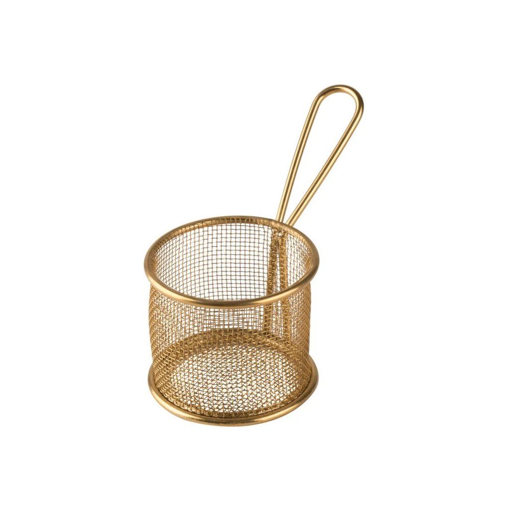Menší servírovací košík umožňuje smažit malé množství zeleniny, brambor, krevet nebo čehokoliv jiného. Také parádně poslouží k samotné prezentaci pokrmů na jídelním stole. K představování doporučujeme nejprve vložit olejový papír do košíku a až na něj umístit smažené jídlo. Tak dosáhnete jednoduchého a stylového efektu. Košík se vyrábí z kvalitní nerezové oceli a zajišťuje elegantní způsob prezentace vašich pokrmů.Košík servírovací 8 cm