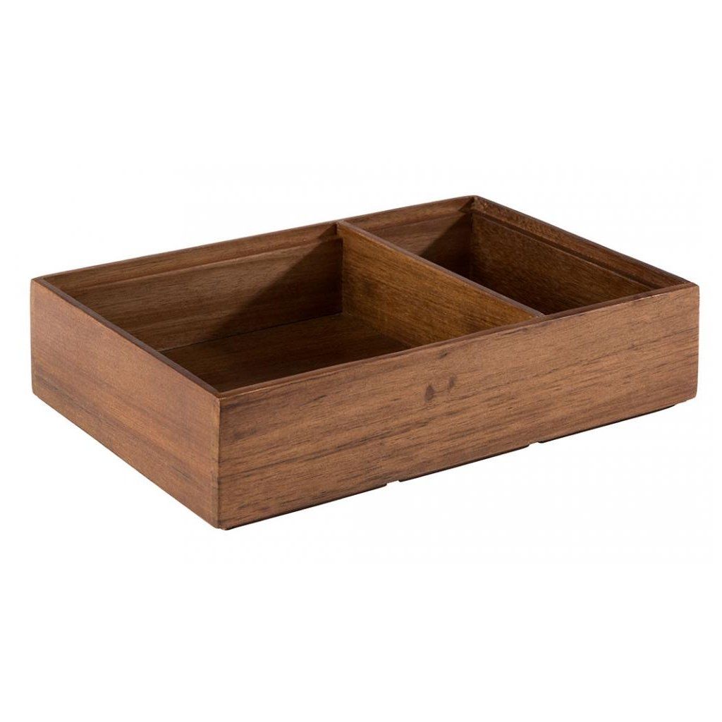 Krabička vyrobená z akátového dřeva. Stohovatelná. Nemýt v myčce. Vnitřní rozměry 135x130 mm / 65x130 mm.Doplňkové parametry