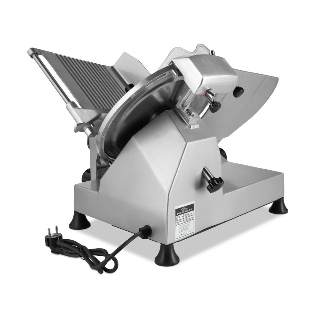 Ruční krájení masa zabere spoustu času. Je také obtížné ručně krájet velmi tenké, rovné plátky o stejné tloušťce. Tento profesionální kráječ masa je přínosem pro každou cateringovou kuchyni. Díky čepeli z tvrzené nerezové oceli o průměru 30 cm snadno nakrájíte dokonalé plátky masa nebo jiných předmětů. Čepel, která je součástí standardní výbavy přístroje, je určena pouze pro krájení masa. Pokud chcete krájet i jiné předměty, nabízíme další příslušenství, jako je teflonem potažená čepel na krájení sýra a vroubkovaná čepel na krájení chleba. Tento kráječ masa je nejen všestranný, ale také velmi tichý, takže jej můžete používat ve stejné místnosti, kde přijímáte zákazníky.