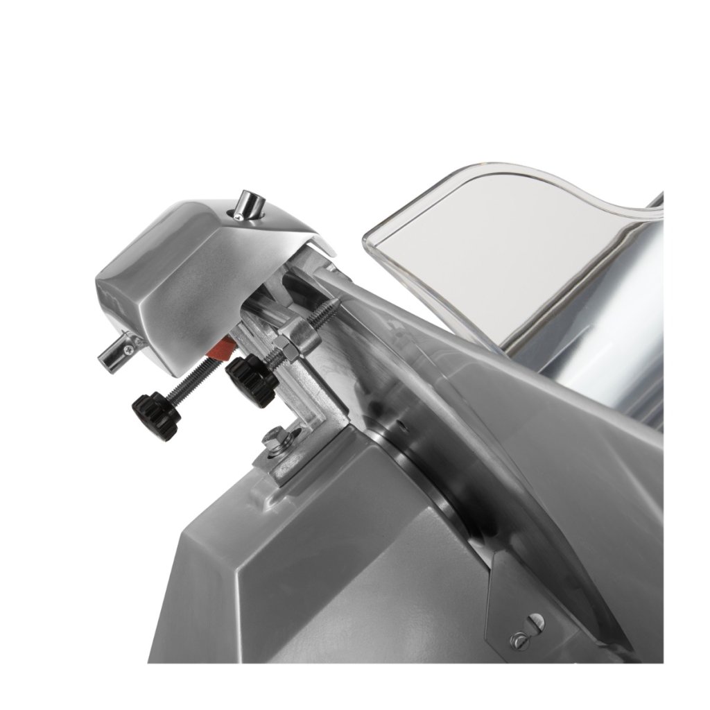 Protože ne každý druh masa se krájí na stejnou tloušťku, můžete snadno nastavit tloušťku řezu pomocí uživatelsky přívětivého knoflíku. Zvolte si tloušťku v rozmezí 1 až 12 mm. V každé profesionální kuchyni je důležitá bezpečnost. Při používání kráječe uvidíte, že se vaše ruce nikdy nepřiblíží k noži. Motor je navíc vybaven vestavěnou pojistkou. Kromě toho je kráječ dodáván s nástavcem pro ostření. Ostrá čepel rovněž zvyšuje bezpečnost. Po nabroušení je nutné kráječ vždy vyčistit, aby se zabránilo vzniku jemných otřepů z brusných kamenů, které by mohly zůstat a skončit v potravinách.