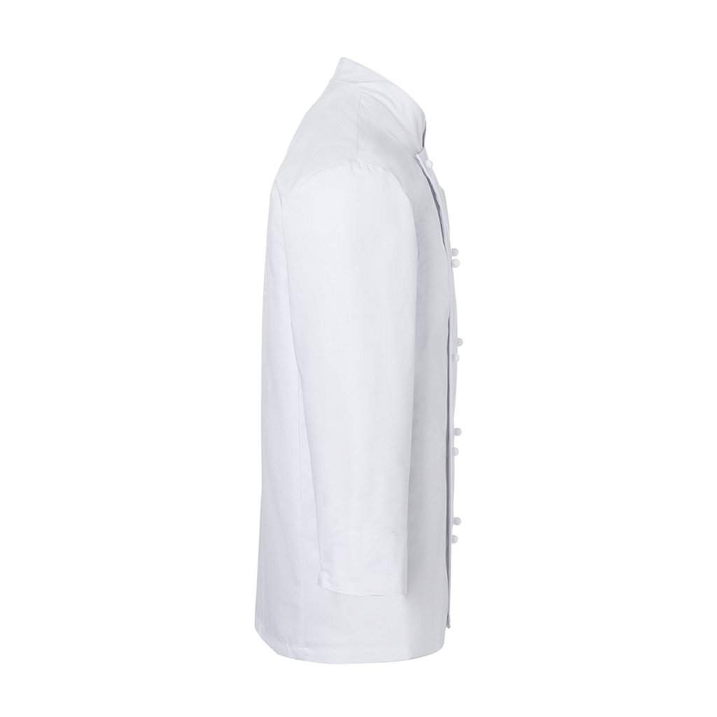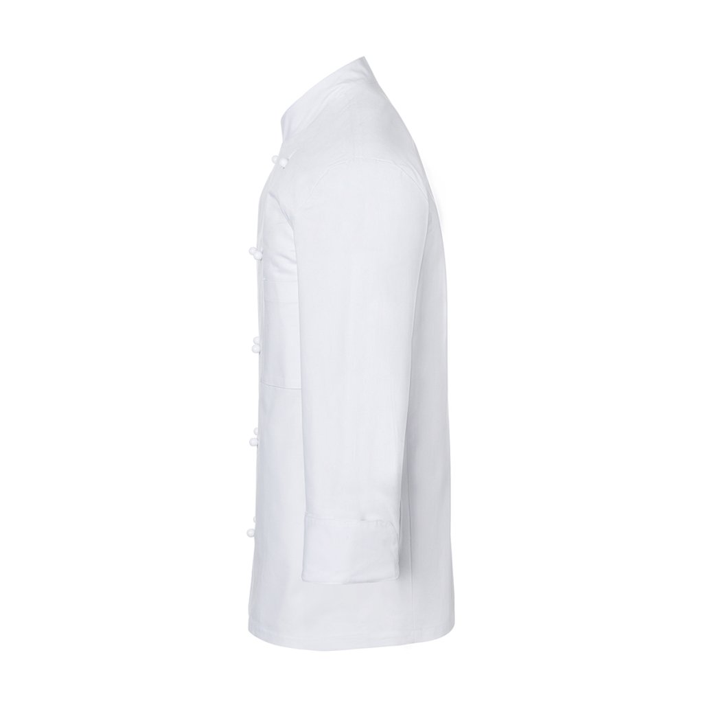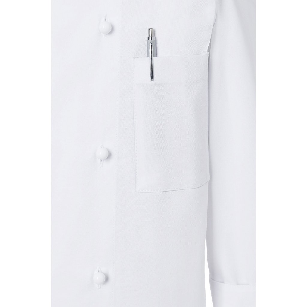 | keprová vazba, 100 % bavlna, 210 g/m² | vysoce rafinovaná, předepraná, stálobarevná | | klasická kuchařská bunda | bez bočních švů | boční švy vzadu | rukávy s moderními rozparky pro praktické ohrnutí | našitá náprsní kapsa na levé straně (min. 10 x 14 cm) | dvouřadá bunda s 10 knoflíky (bez knoflíků a knoflíkové légy; tyto je nutné objednat samostatně) | vhodné pro průmyslové praní pro snadnou údržbu a dlouhou životnost | odpovídající knoflíková léga: KL 4 (číslo výrobce) | odpovídající výrobek: Dámská kuchařská bunda Agathe - JF 1 (číslo výrobku výrobce)Doplňkové parametry