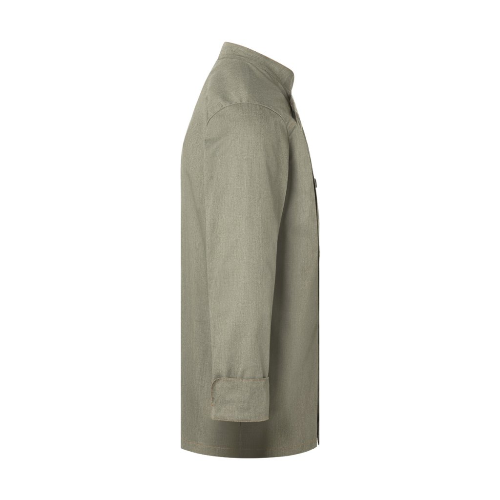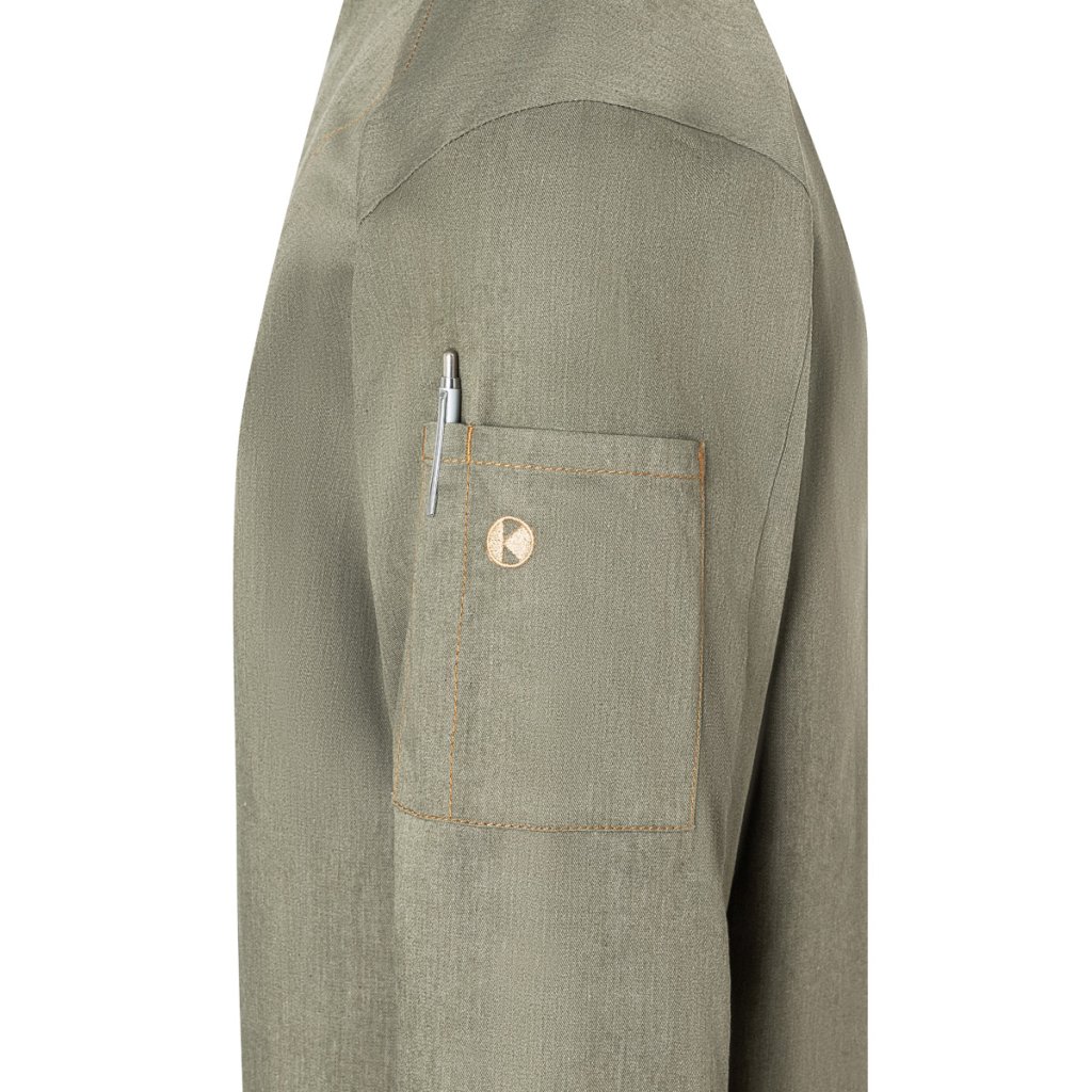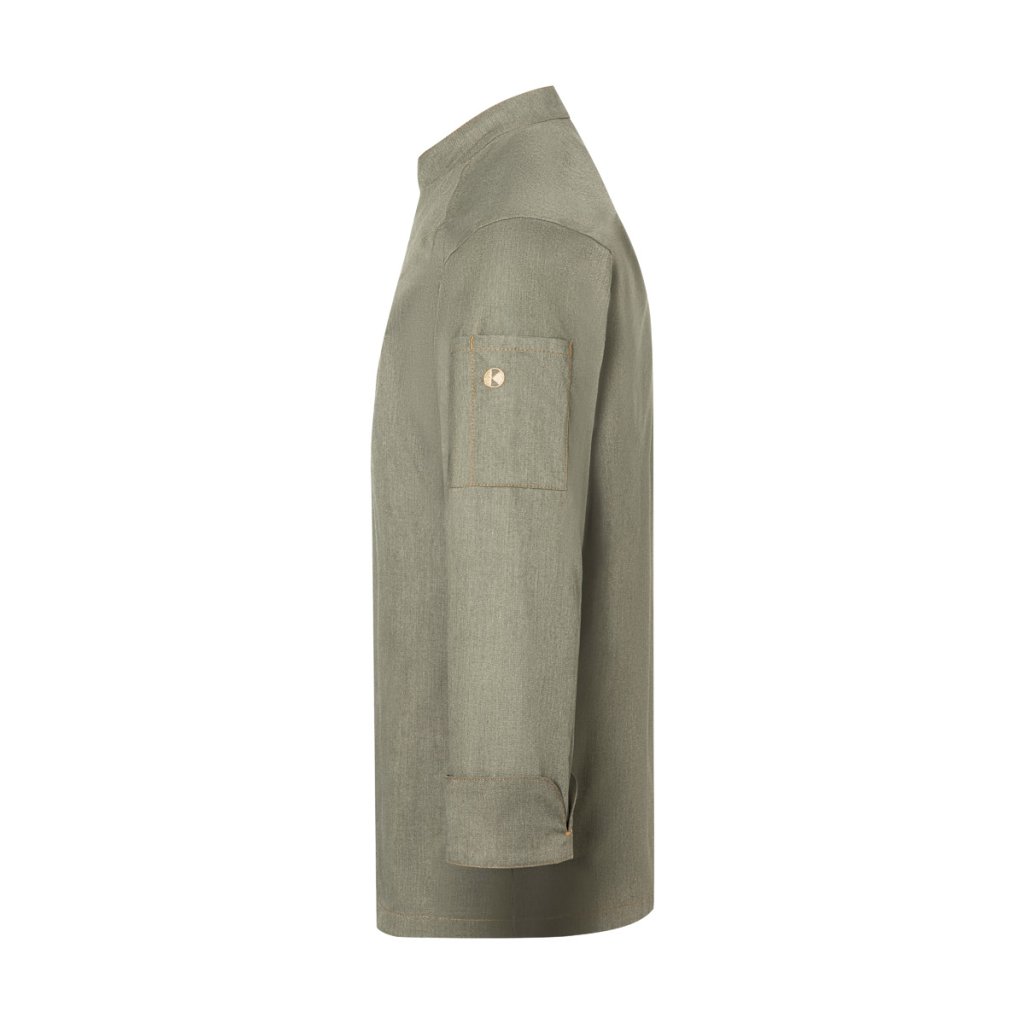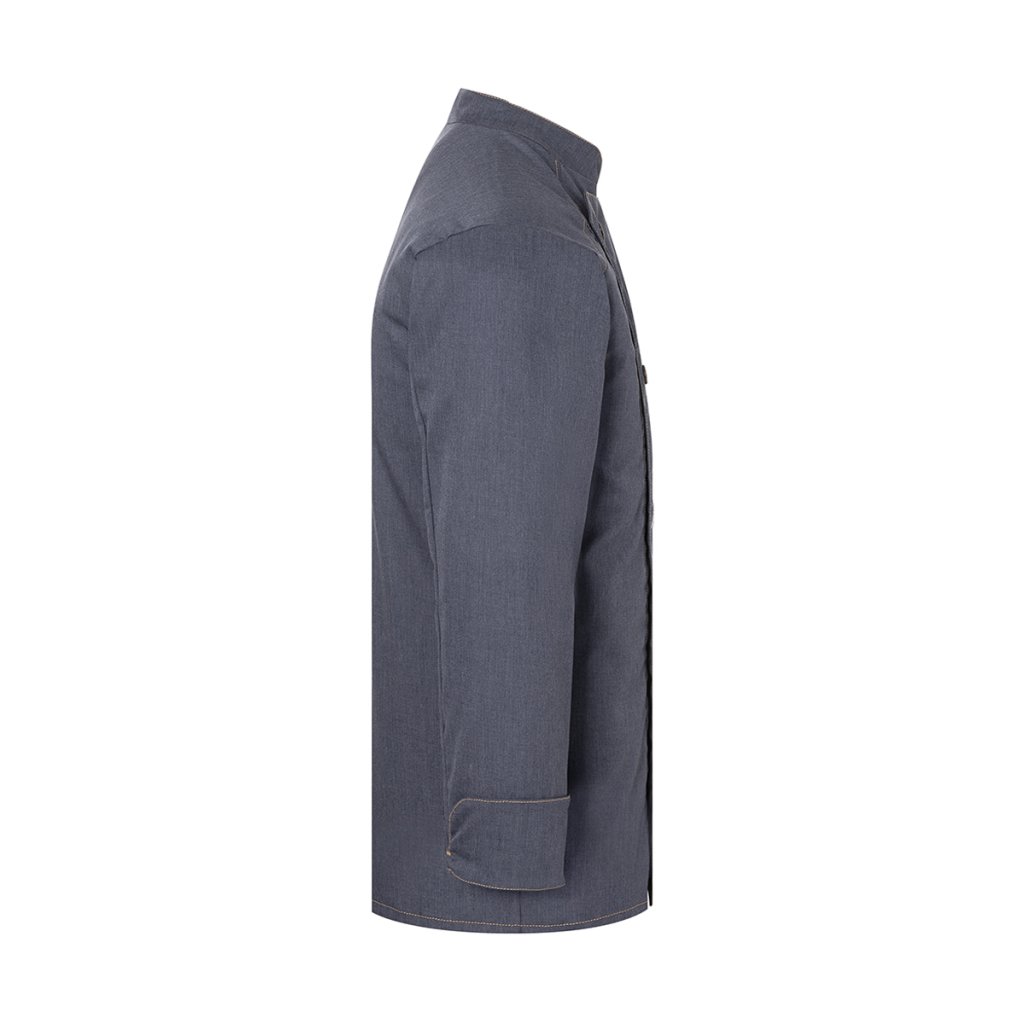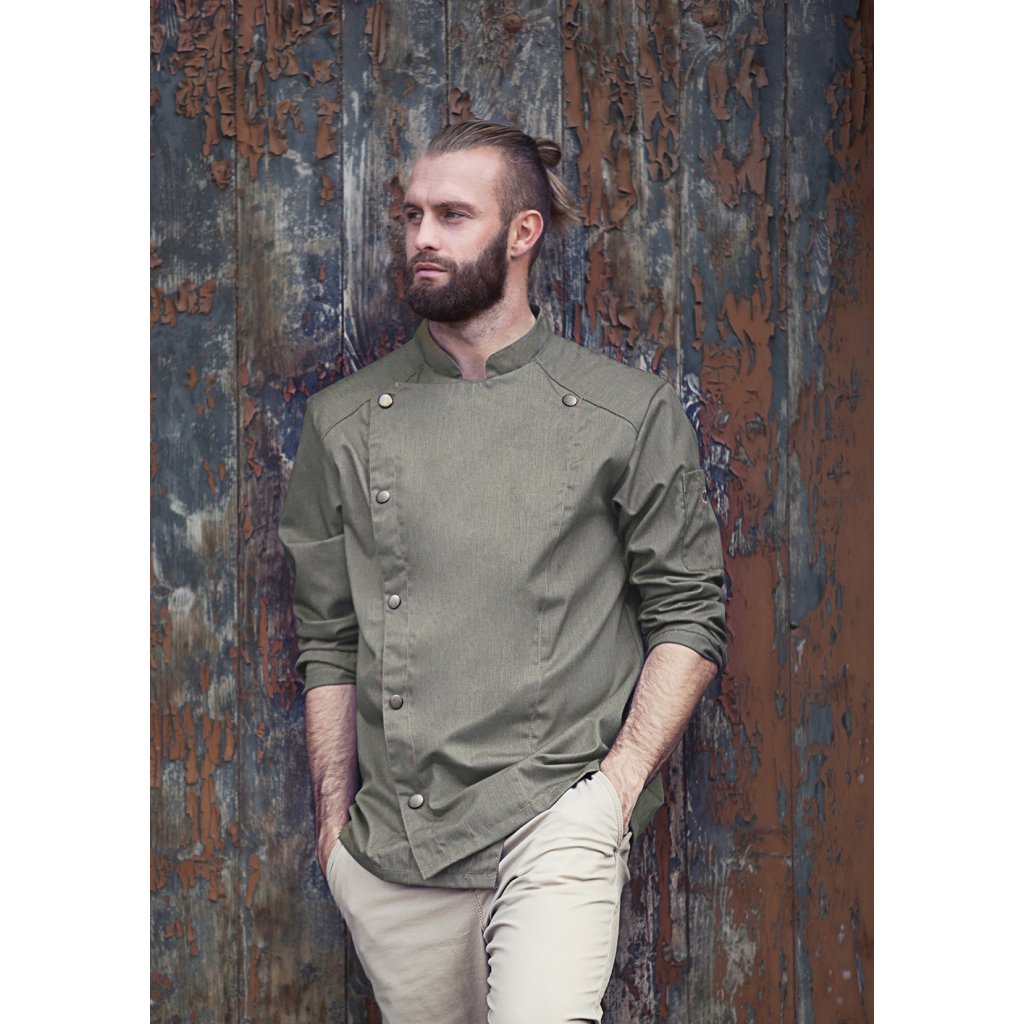 | keprová vazba, 65 % polyester / 35 % bavlna, 195 g/m² (vintage červená: 175 g/m²) | vysoce kvalitní, předsrážená, stálobarevná, snadná údržba | | trendy kuchařská bunda v džínovém stylu se štíhlým střihem | kontrastní barevné švy pro originální džínový vzhled | asymetricky zapínaná, jednoradová bunda s 5 knoflíky a druky pro rychlé zapínání a rozepínání | manžety rukávů se štěrbinou | našitá kapsa na rukávu (11 x 13 cm) na levé straně s praktickou přihrádkou na pera (2 x 13 cm) | vhodná pro průmyslové praní | odpovídající výrobek: dámská kuchařská bunda – JF 20 (číslo výrobku výrobce)Doplňkové parametry