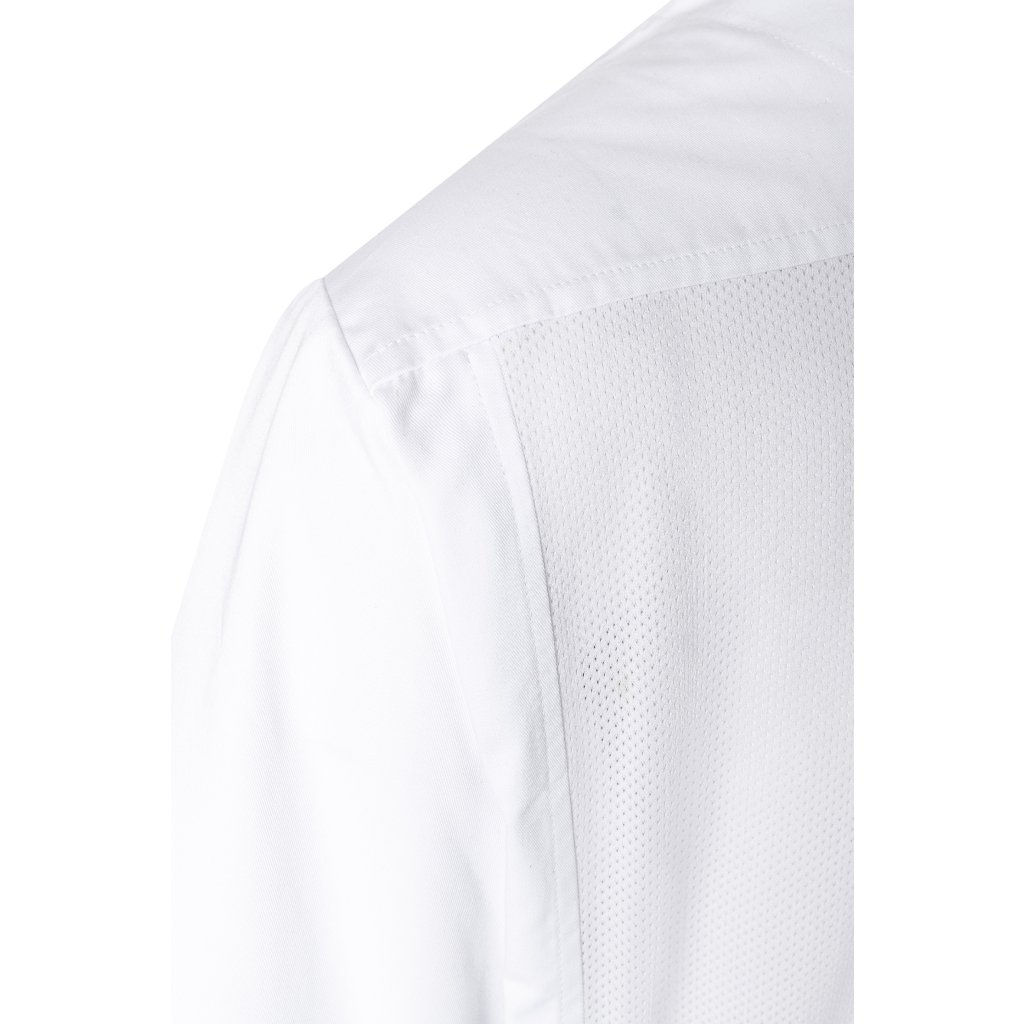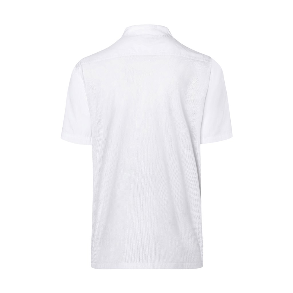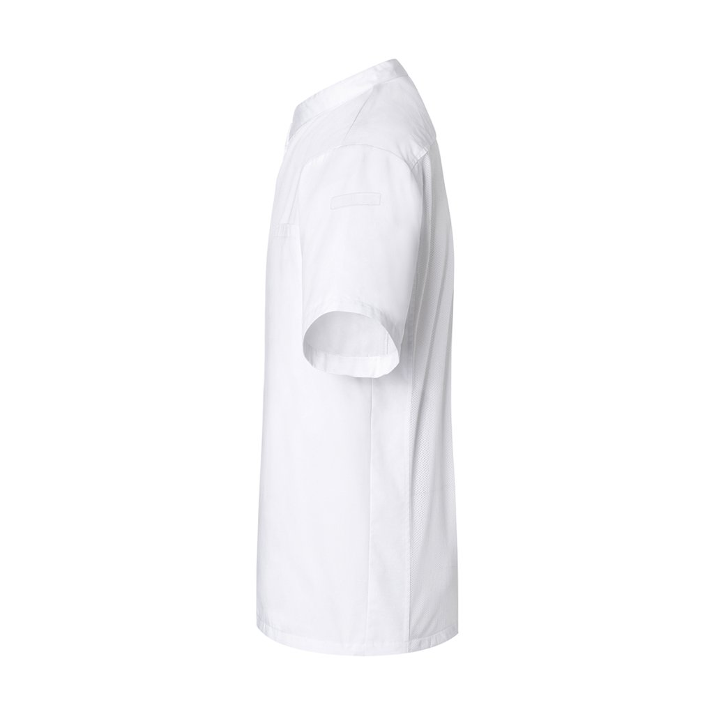 | přední část: keprová vazba, 65 % polyester / 35 % bavlna, 215 g/m² | zadní část: úplet, 100 % polyester, prodyšný, regulující vlhkost | zadní část: úplet, 100 % polyester, prodyšný, regulující vlhkost | moderní kuchařská košile s krátkými rukávy pro příjemný komfort při nošení | snadné oblékání přes hlavu | zadní vložka z úpletu (síťovina) zajišťuje pohodlí a příjemný pocit | skrytá knoflíková léga se stiskacími knoflíky | rozepnutím patentních knoflíků se zvětší obvod košile a usnadní se oblékání | na levé straně hrudníku kapsa s lemováním (2 x 11,5 cm) | levý rukáv s kapsou s lemováním (1,5 x 6 cm) | odpovídající výrobek: Dlouhé sako s dlouhými rukávy - BJM 4 (číslo výrobku výrobce)Doplňkové parametry