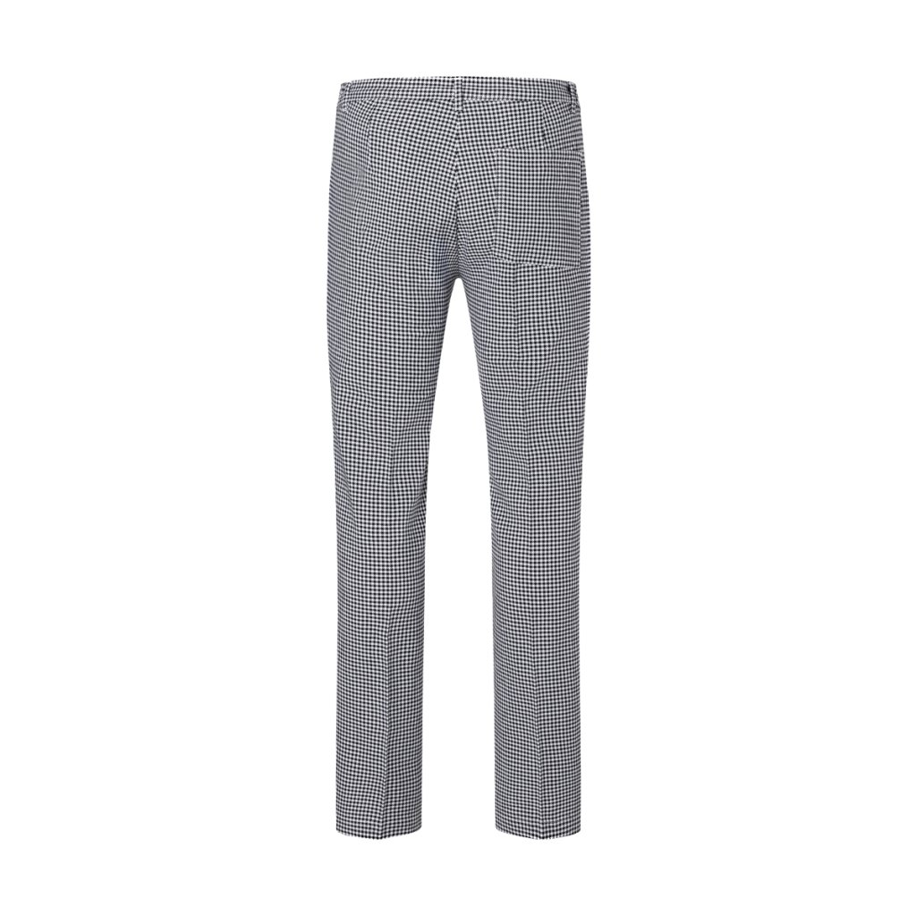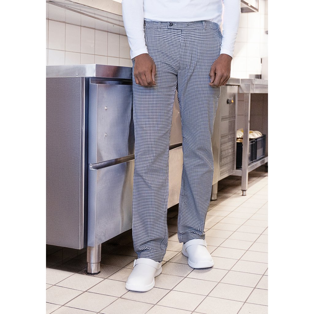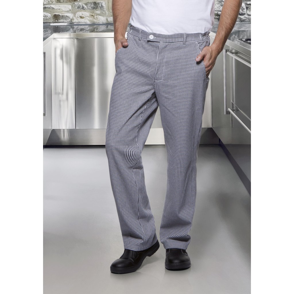 | keprová vazba, 100 % bavlna, 230 g/m² | snadná údržba, stálobarevné | | robustní a snadno udržovatelné pracovní kalhoty pro muže s klasickým pepita vzorem | pohodlný střih pro maximální volnost pohybu | univerzální, vhodné pro použití v kuchyni, pekárně, cukrárně a potravinářském průmyslu | elastický pas na boku pro optimální padnutí a celodenní pohodlí | 1 zadní kapsa vpravo a 2 boční kapsy na důležité věci | lze prát až na 60 °C | souprava: dámské kuchařské kalhoty – BHF 3 (číslo výrobku)Doplňkové parametry