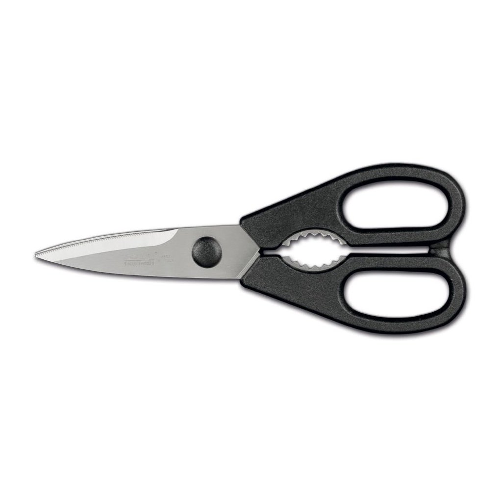 Vroubkovaná čepel z nerezové oceli. Tvrdost: 54-55 HRC. Rukojeť z nylonu (PA6). Další vroubkované hrany v rukojeti pro louskání ořechů. Nůžky lze rozložit na 2 části pro snadné čištění.Buďte první, kdo napíše příspěvek k této položce.