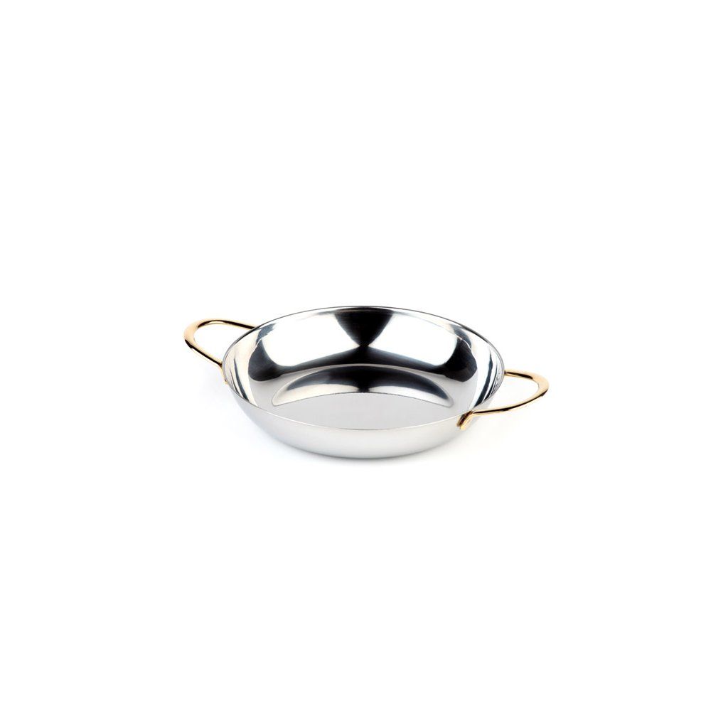 Hluboký servírovací tác vyrobený z 1 mm hrubé nerezové oceli. Pozlacené úchyty. Možnost stohovat. Nevhodný do myčky. Neohřívat, nepoužívat v troubě.Doplňkové parametry