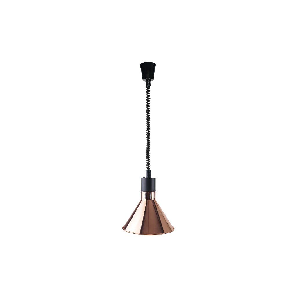 Infra lampu Modern využijete hlavně při ohřevu na výdejovém pultu. Postará se o to, že jídlo zůstane teplé i při výdeji. Protože je lampa na očích, kladli výrobci důraz i na její design.Lampa infra Modern – měděná