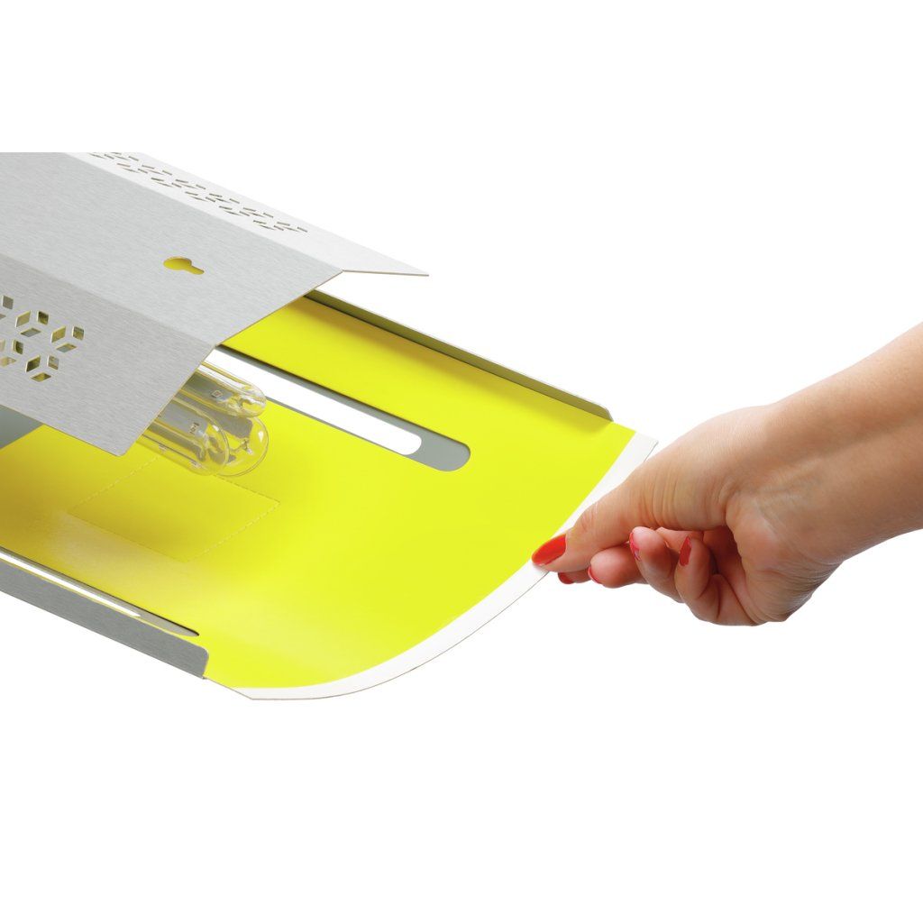 Lapač hmyzu z kvalitního hliníku lze používat jako stolní i nástěnné zařízení. Kombinace UV-A světla a lepicí fólie zajišťuje tichý, úsporný a účinný odchyt obtížného hmyzu.