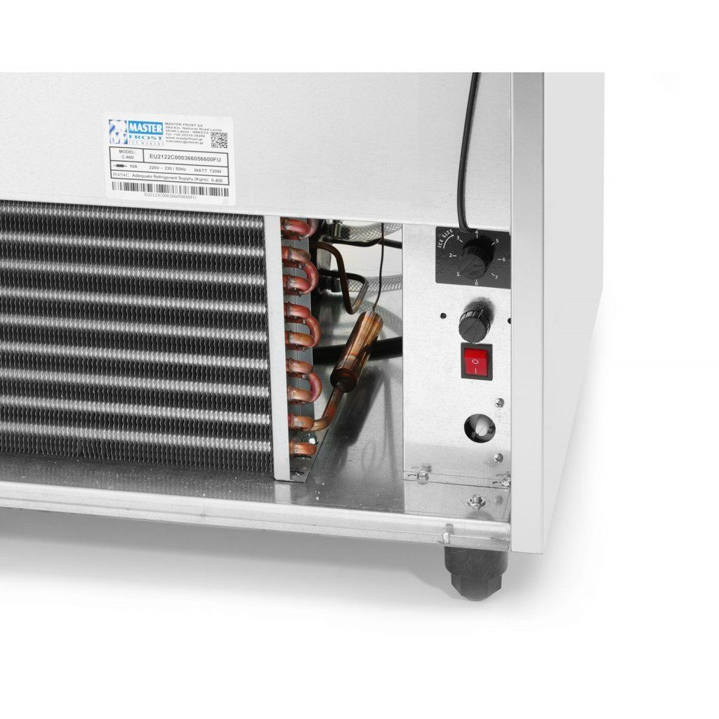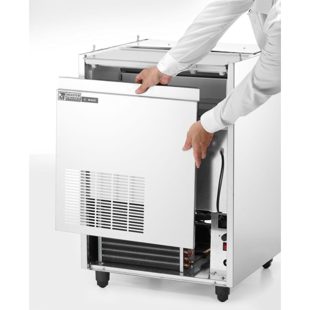 Spotřebič je určen k použití v barech, hospodách, kavárnách a restauracích. Robustní kryt z nerezové oceli AISI 304. Plastový interiér. Větrací otvory na přední straně krytu umožňují instalaci výrobníku ledu pod pultem. Spotřebič používá metodu stříkání k dokonalému vytvarování kostek pomocí šestihranného otvoru, který má větší chladicí povrch a zajišťuje delší dobu chlazení – a zároveň minimalizuje ředění nápojů. Inovativní metoda výměny tepla pomocí přídavného kondenzátoru – rekuperace tepla kompresoru používaná k odmrazování desky stříkání. Prodloužený výkon a životnost kompresoru. Efektivní provoz při okolní teplotě až 42 °C.Nízká spotřeba energie. Nastavení úrovně naplnění zásobníku ledu. Nastavitelné nožičky. Snadné čištění díky odnímatelným dílům. Vstupní a výstupní hadice a odměrka na led jsou součástí dodávky. Chladivo: R454c. Denní výkon: 65 kg. Kapacita zásobníku na led: 30–35 kg. Rozměry: 600×580×(V)820 mm. Napájení/napětí: 720 W/230 V.Net/hrubá hmotnost: 55/57 kg.Buďte první, kdo napíše příspěvek k této položce.