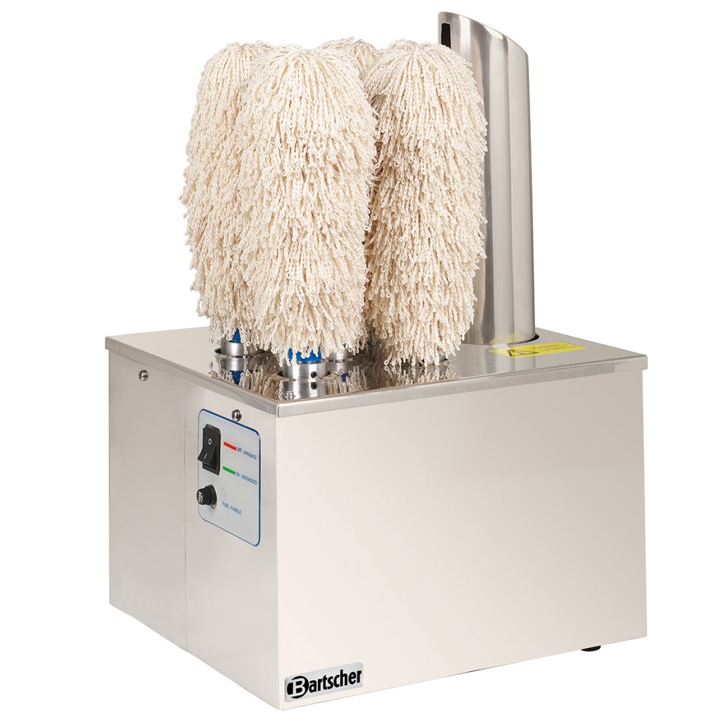Leštička na sklo - 5 rotujících válečků a horkovzdušný ventilátor vám vyleští sklo během několika sekund.- méně rozbitého skla,- menší riziko zranění,- vysoká úroveň hygieny,- pouzdro z nerezové oceli,- odnímatelné lešticí prvky z mikrovlákna,- příkon: 1,1 kW / 230 V 50 Hz,- Rozměry: Š 340 x D 305 x V 520 mm,- hmotnost: 16 kg.Doplňkové parametry