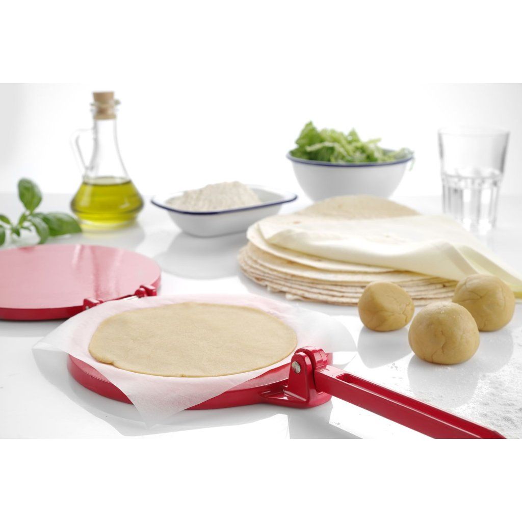 Lis na tortilly. Maximální průměr tortilly 200 mm. Vyrobený ze slitiny hliníku práškované červenou barvou.Doplňkové parametry
