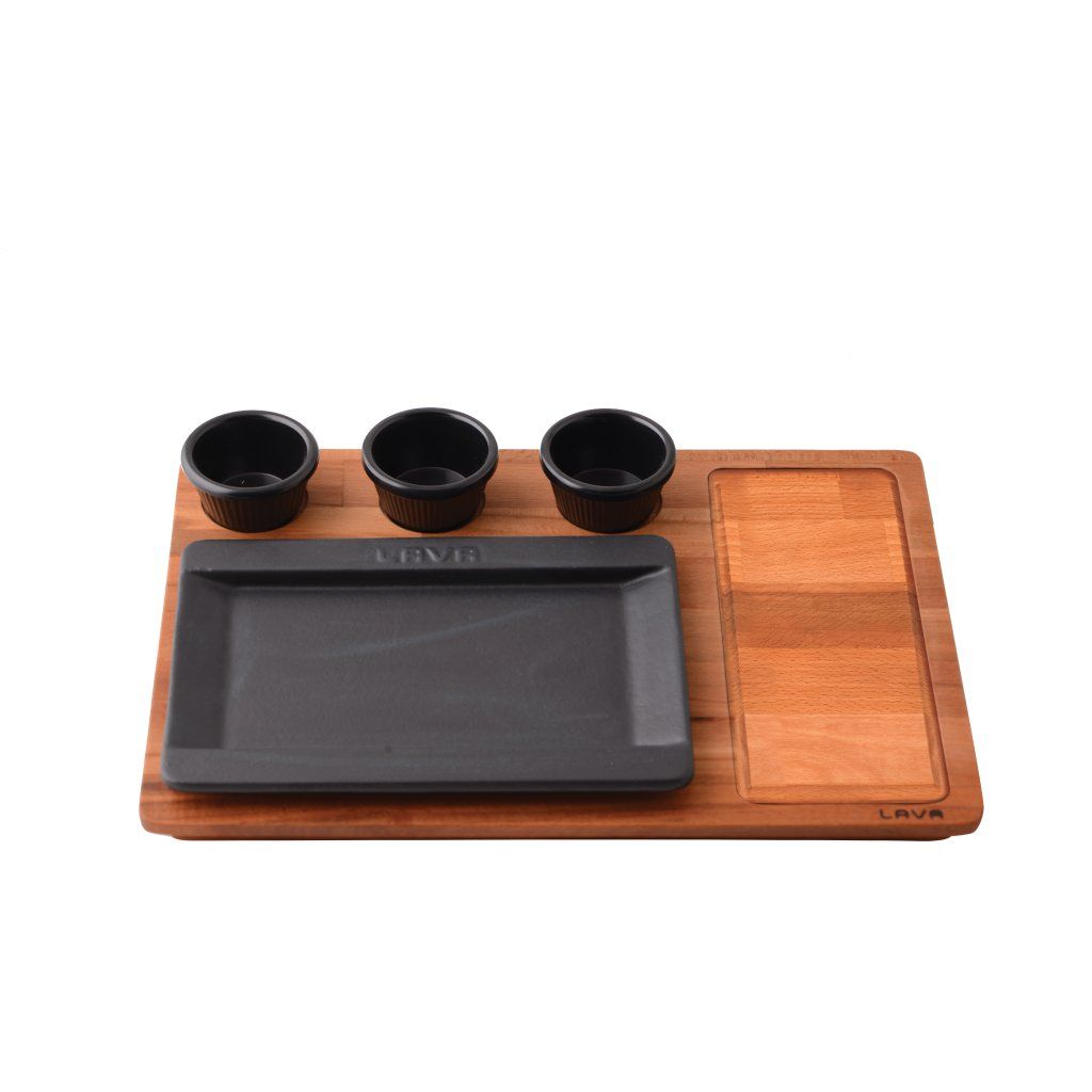 Litinová deska 180x250 mm na dřevěném podstavci, černá | FINE DINE, 832264