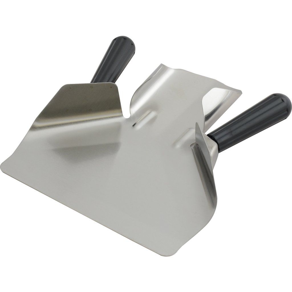 Lopatka na nakládaní hranolek. Vyrobená z nerezové oceli s úchyty z umělé hmoty. Šířka ve spodní části cca 80 mm. Určená pro praváky i leváky.