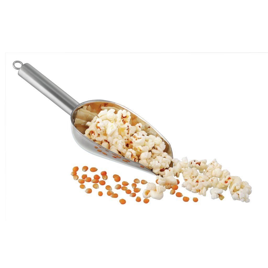Lopatka z nerezové oceli vhodná do myčky umožňuje čisté, hygienické a pohodlné nabírání, dávkování i vážení popcornu, mouky, koření, čaje, müsli nebo sladkostí. Praktický otvor na konci rukojeti usnadňuje zavěšení a pomáhá udržet pořádek na pracovišti.