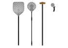 [Sada] Lopatka na pizzu s dřevěnou rukojetí, čtvercová, 310x355x660 mm + Kráječ na pizzu, průměr čepele 100 mm + Úhlová obracečka s dřevěnou rukojetí, děrovaná, 370x73 mm + Špachtle s plastovou rukojetí, 235x80 mm | TECHNICA,
