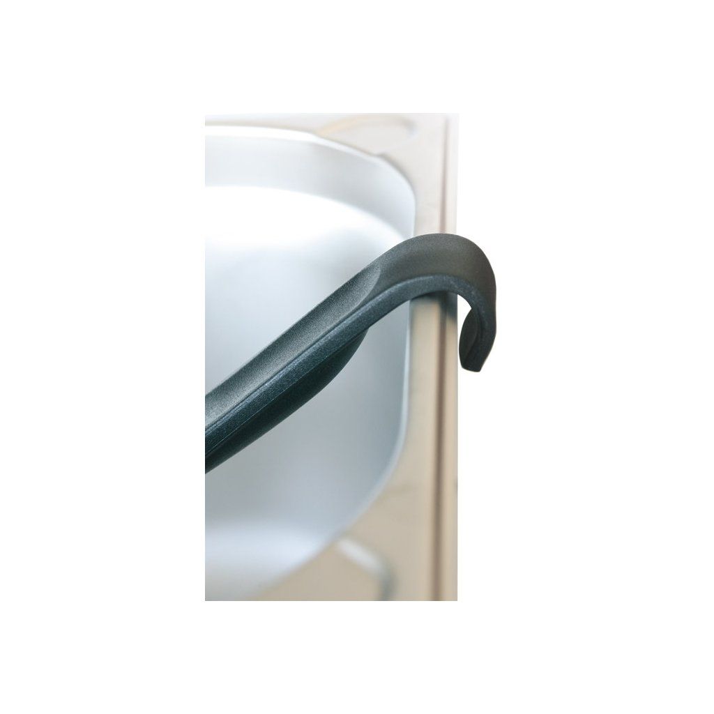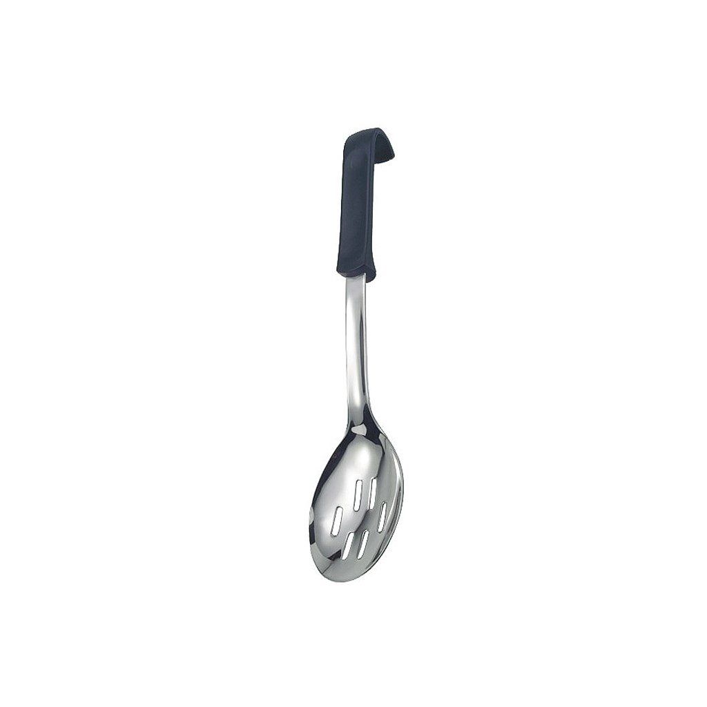 Perforovaná lžíce z nerezové oceli. Černý, ergonomický úchyt z polypropylenu má teplotní odolnost do 120° Celsia. Vhodná do myčky. Plocha 105x70 mmDoplňkové parametry