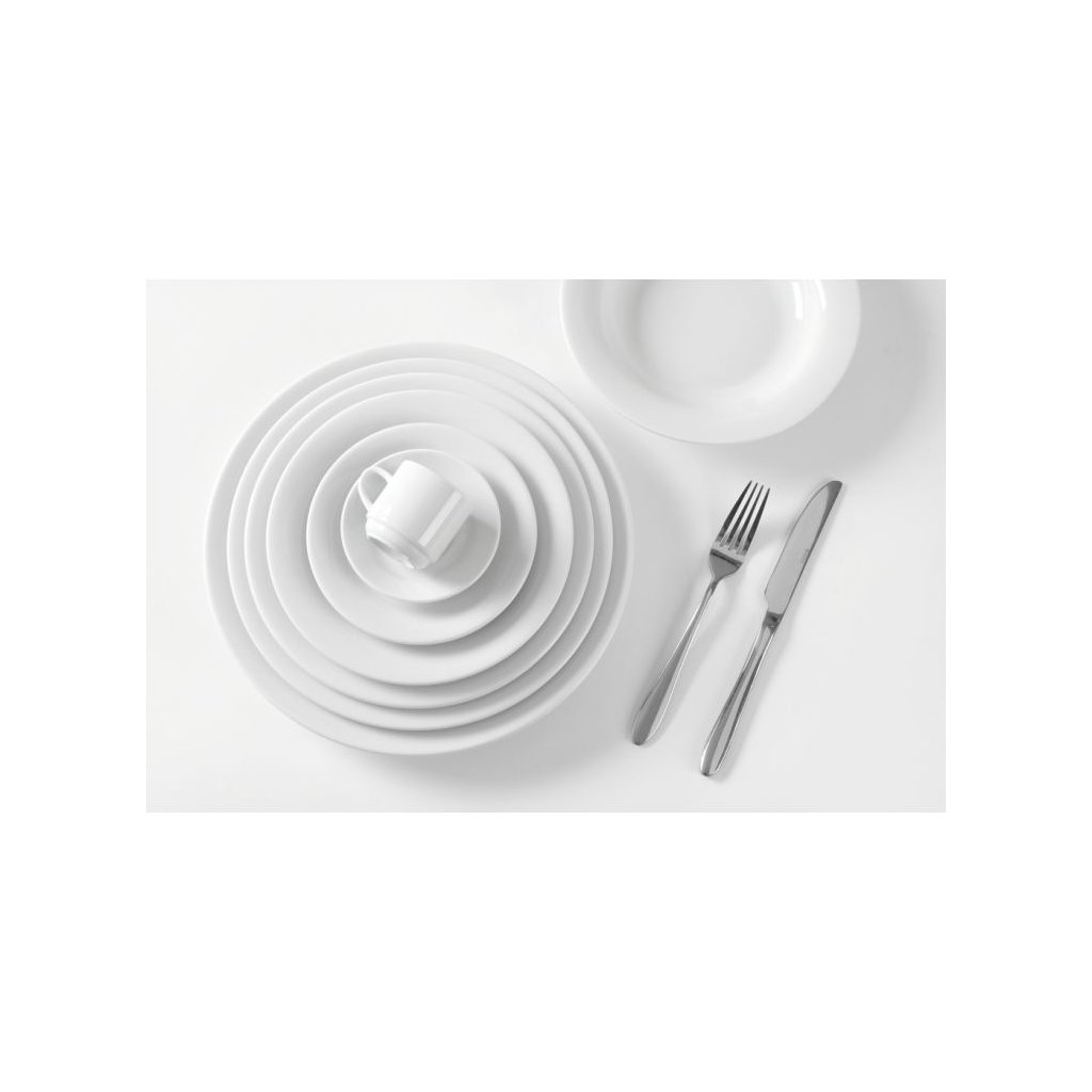 Vysoce kvalitní, bílý hotelový porcelán. Zpevněné okraje, vysoká kvalita povrchu. Nejvyšší odolnost proti poškrábání, ubití okrajů a termický šokům. Prodává se pouze v balení. Vhodný do myčky a mikrovlnné trouby.Buďte první, kdo napíše příspěvek k této položce.