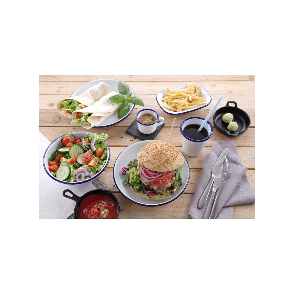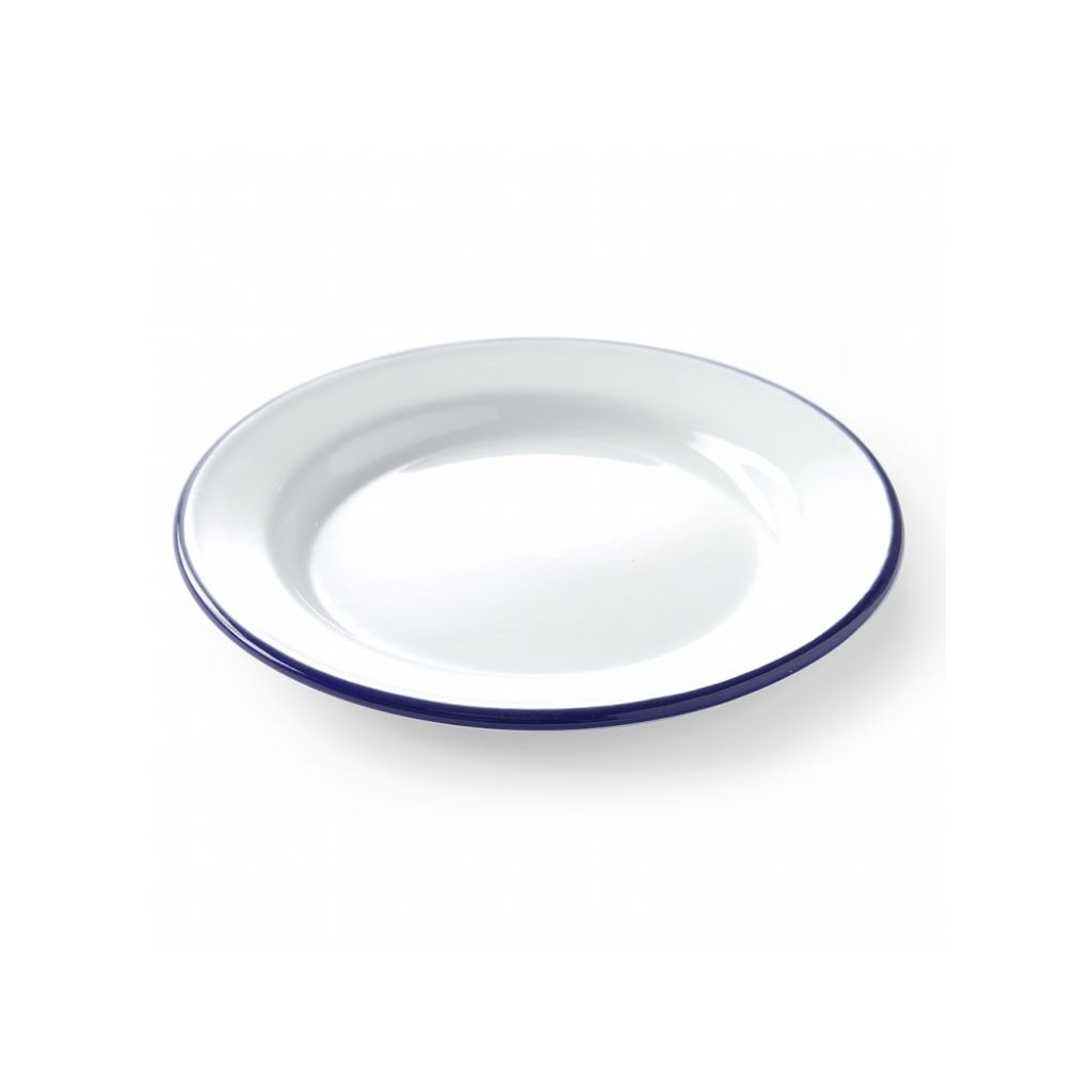 Smaltované nádobí, mělký talíř o průměru 240 mm. Vhodný pro servírování nebo přípravu potravin- ocel se smaltovaným povrchem s jemným modrým okrajem- vysoce kvalitní a odolný smalt- teplotní odolnost do 350° C- vhodné do myčky- nepoužívat v mikrovlnné trouběDoplňkové parametry