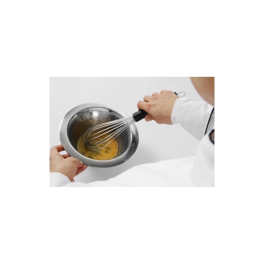 Profesionální metlička vyrobená z nerezové oceli s 12 tvrdými vřeteny o tloušťce 1,4 mm. Úchyt je vyrobený z polypropylénu. Vhodná do myčky nádobí.Doplňkové parametry