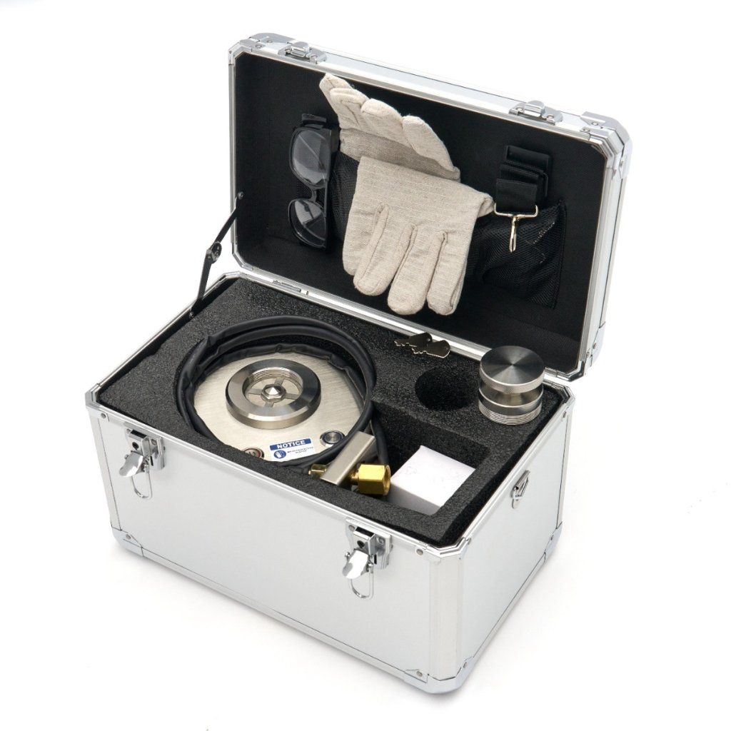 Tento mini stroj na výrobu suchého ledu se dodává s přepravním kufříkem naplněným těsnicím kroužkem pro připojení hadice k nádrži CO2, napájecím adaptérem pro stroj na výrobu suchého ledu, ochrannými brýlemi a válcem na suchý led. Bezpečná práce se suchým ledem je důležitá, protože může být riskantní. Nejprve se ujistěte, že je láhev CO2 bezpečně upevněna, aby při náhodném odpojení hadice nevystřelila. Na přívodní hadici lahve CO2 je kovový závit, který byste měli umístit také kolem hrdla lahve CO2. Tím zabráníte vyklouznutí hadice, pokud se uvolní. Při výrobě suchého ledu je důležité používat ochranné brýle. Umístěte láhev se suchým ledem na miniaturní přístroj na výrobu suchého ledu. Jakmile máte všechna bezpečnostní opatření hotová, můžete začít stroj provozovat.