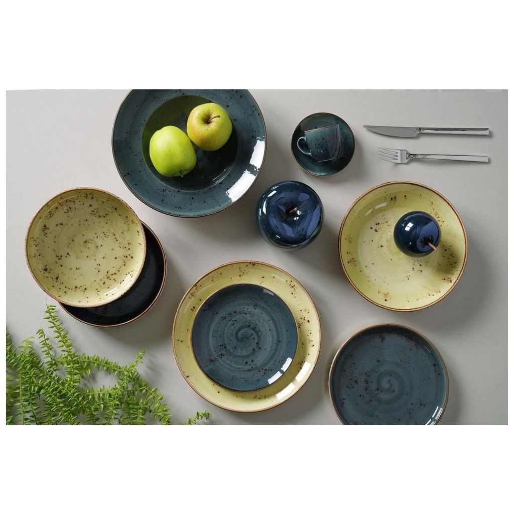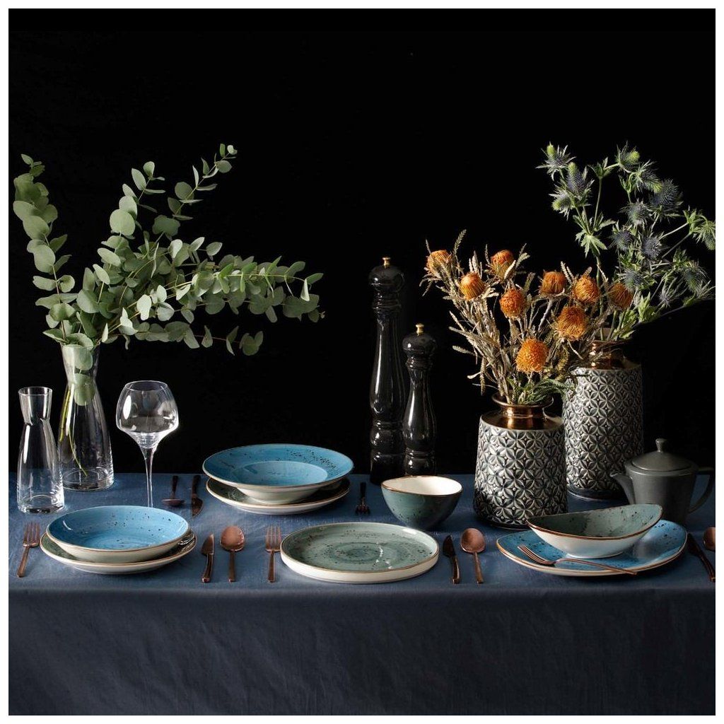 Bohatá kolekce ručně dekorovaného porcelánu v pěti svěžích barvách. Sladěte krémové, oranžové, modré, šedé a olivové kousky, abyste získali jedinečný a překvapivý vzhled stolu, a jídlo bude vypadat stejně dobře jako chutnat. Odolné a trvanlivé nádobí navržené tak, aby vydrželo náročné používání v profesionální kuchyni.Buďte první, kdo napíše příspěvek k této položce.