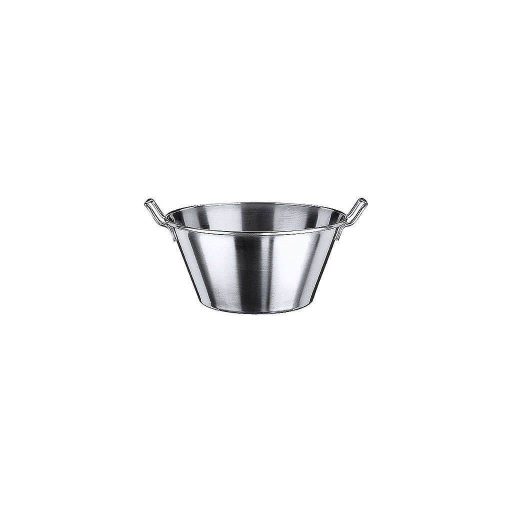 Mísa z nerezové oceli se dvěmi úchyty a širokým okrajem.Doplňkové parametry
