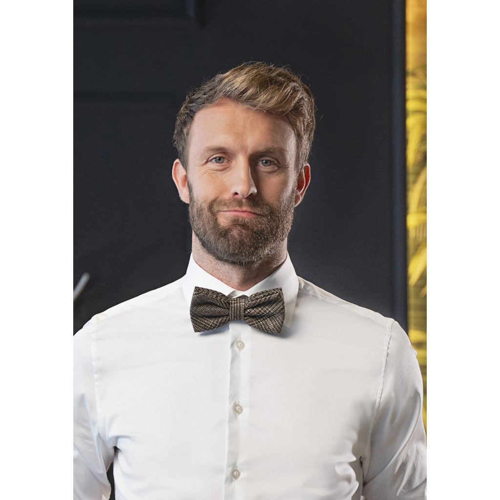 | rozměry: cca 12 cm (šířka) | | svrchní materiál: 70 % polyester / 30 % vlna | styl: elegantní | stylová městská motýlek s glencheck vzorem | všestranné použití, např. v pohostinství, barmanství, hotelnictví a mnoha dalších oborech | stylový doplněk k mnoha outfitům v oblasti volného času | předvázaná | šířka límce nastavitelná od 23 cm (>2XS) do maximálně 46 cm (=2XL) | s háčkem pro otevírání a zavírání | odpovídající výrobek: Šle Urban-Glencheck - AG 5 (číslo výrobku výrobce)Doplňkové parametry
