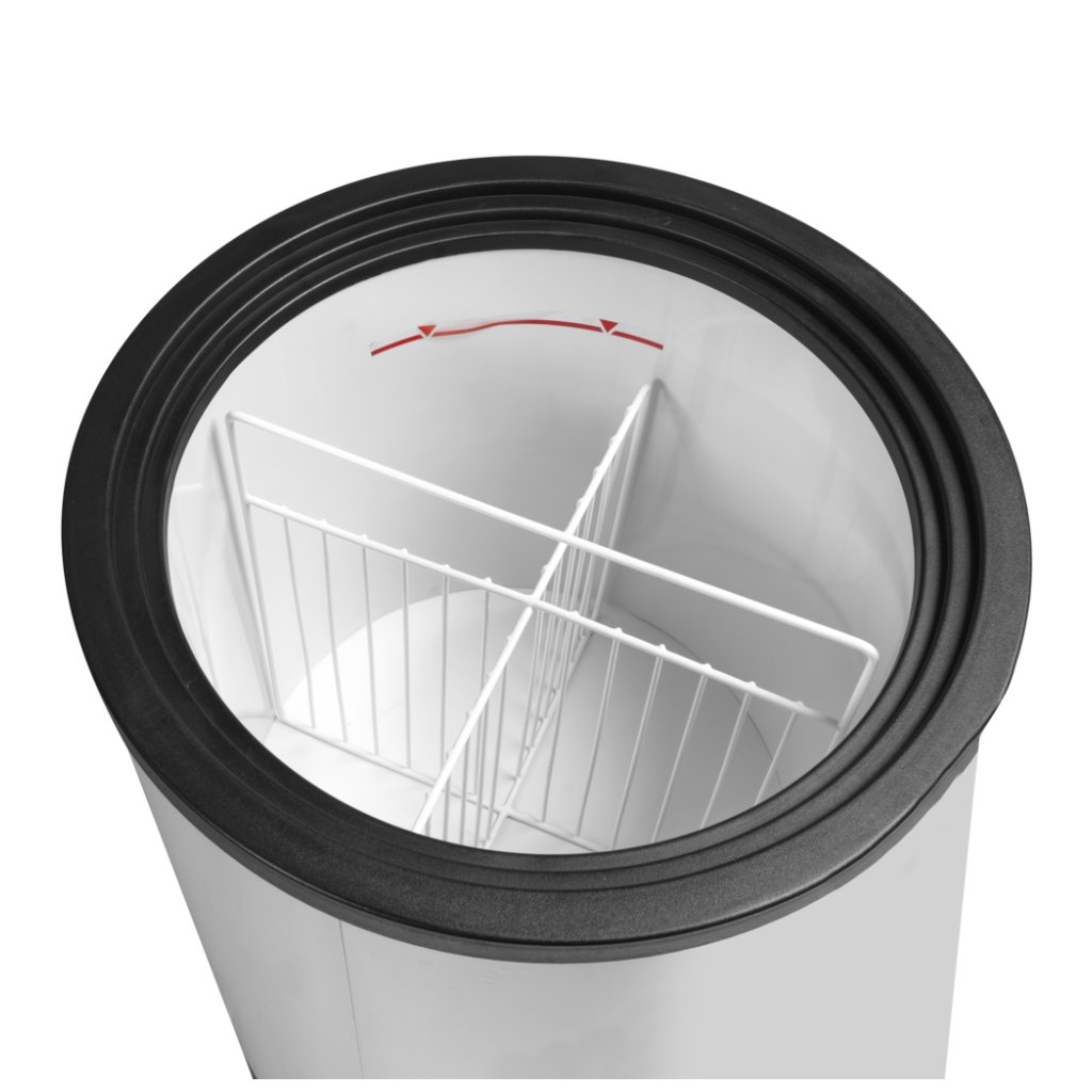 Mobilní mrazicí vana s dělicím systémemTato mrazicí vana na je ideální pro stimulaci impulzivních nákupů v blízkosti pokladen v obchodech nebo na akcích. Můžete do ní dát jednotlivě balené nanuky, vaničky se zmrzlinou, mražená krmiva pro domácí zvířata – možností je mnoho. Je také ideální k propagaci značky na veletrzích, zejména pokud ji pěkně vyzdobíte, aby přitahovala pozornost potenciálních zákazníků. Pro lepší přehled o mraženém obsahu uvnitř je mrazicí vana vybavena systémem přepážek. Díky kompaktním rozměrům a odolným kolečkům lze mrazicí vanu snadno přemístit.