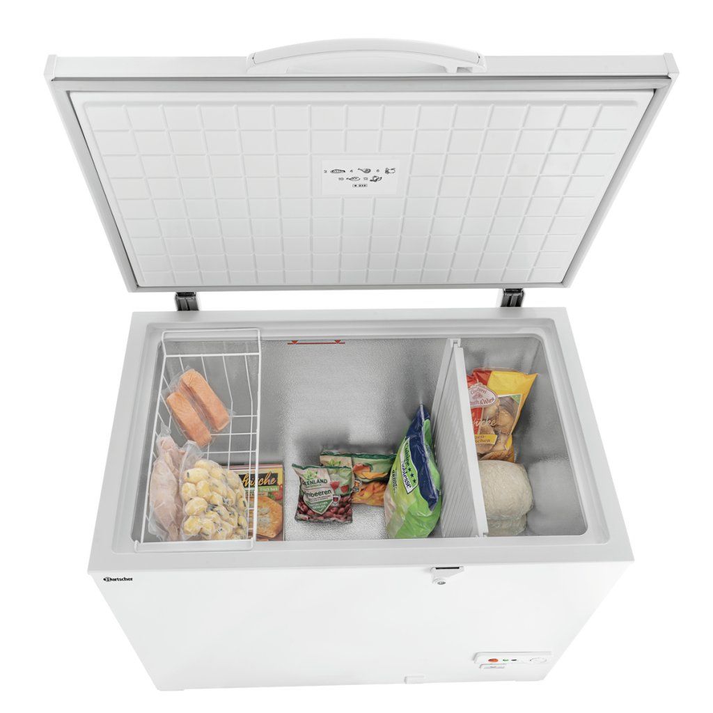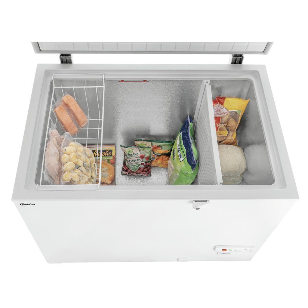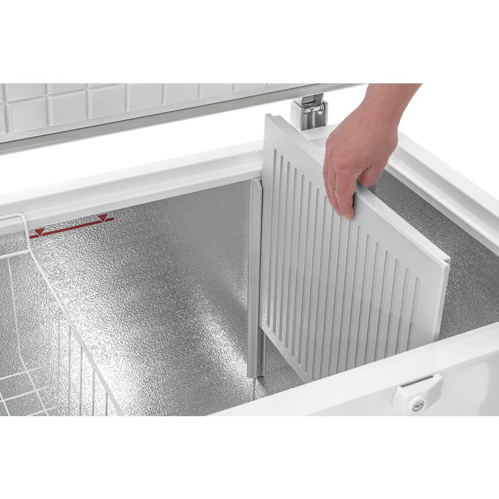 Mraznička o objemu 288 litrů představuje energeticky úspornou alternativu ke klasickým modelům. Dva koše a dělicí příčka pomáhají přehledně uspořádat a oddělit jednotlivé druhy mražených potravin.