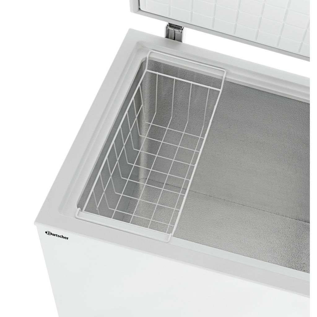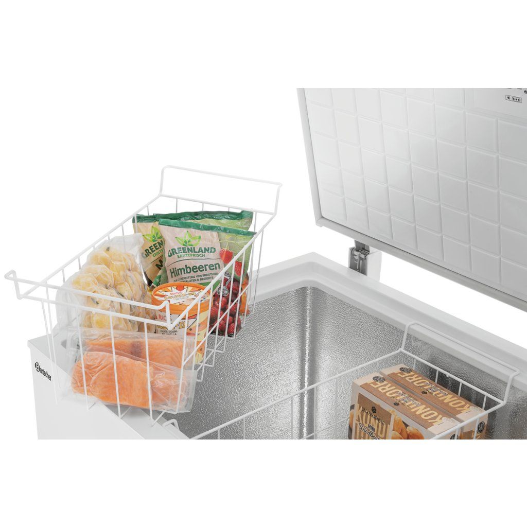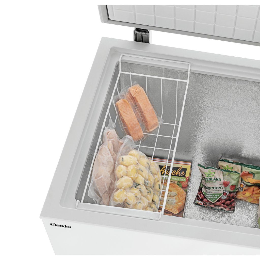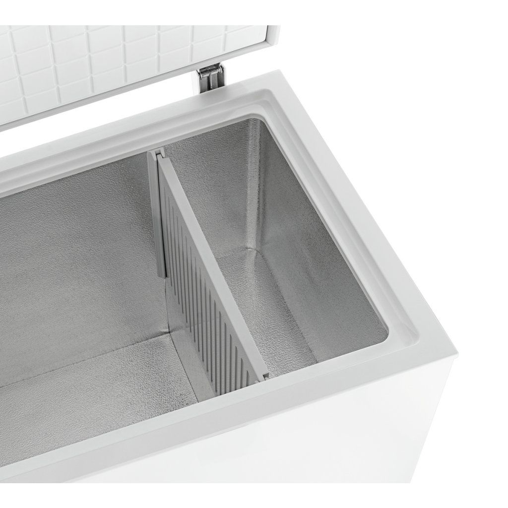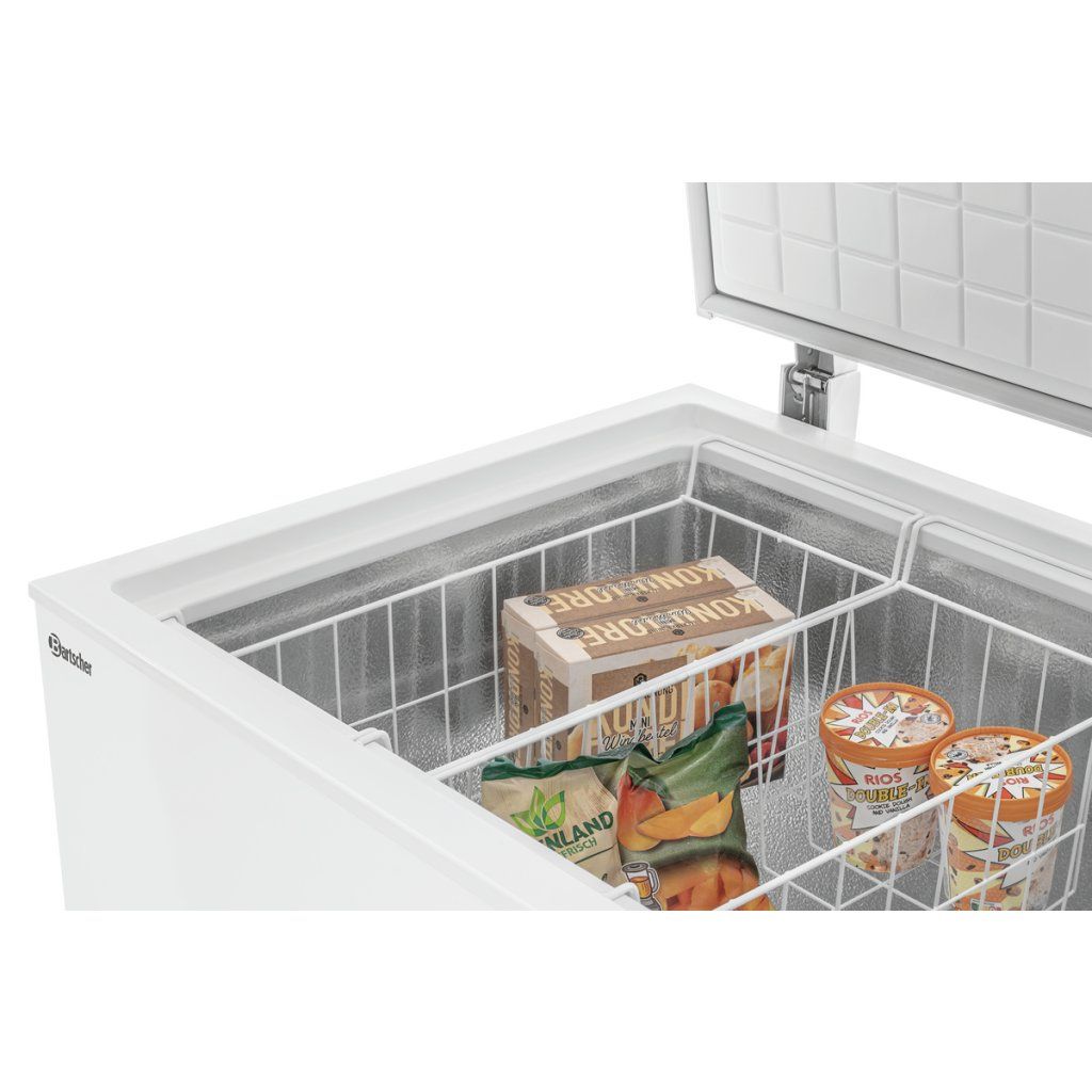 Mraznička o objemu 479 litrů představuje úspornou alternativu ke klasickým modelům. Koše a dělící stěna usnadňují přehledné třídění a organizované skladování mražených potravin.