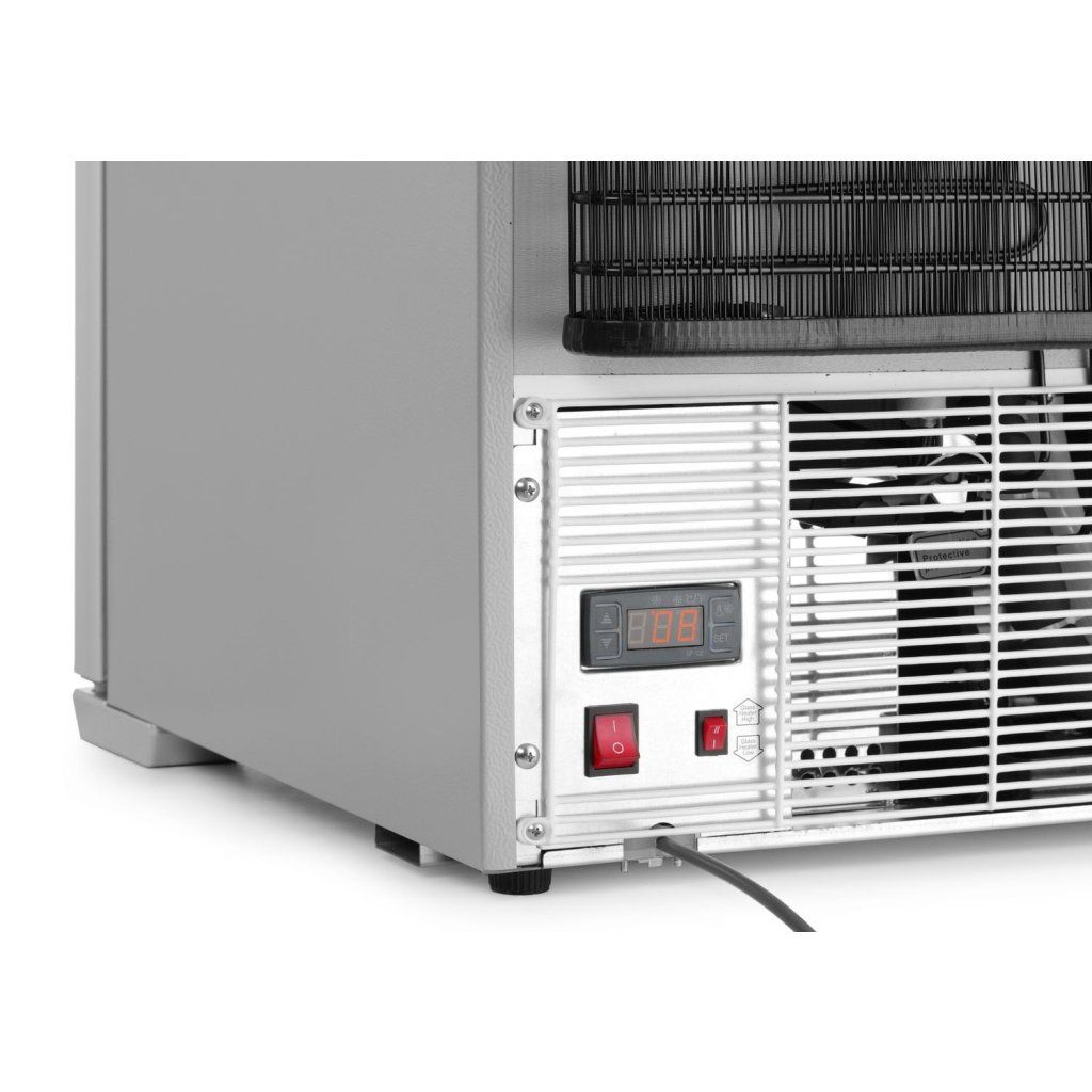 Pro použití v profesionálním stravování Vnější plášť z bílé práškově lakované oceli Vnitřní plášť z polypropylenu a termoplastického polymeru (HIPS) Uzamykatelné dveře s trojitým zasklením a vyhřívacím prvkem proti zamlžování 3 nastavitelné ocelové police potažené PVC Statické chlazení s vestavěným ventilátorem pro rychlé vyrovnání teploty v celém prostoru spotřebiče Ruční odmrazování Kompresor umístěný v dolní části oddílu LED osvětlení v horní části mrazničky Digitální termostat a displej na zadní straně spotřebiče Chladivo: R290 Energetická třída: C. Klimatická třída: 4 Nastavitelné nožičkyBuďte první, kdo napíše příspěvek k této položce.