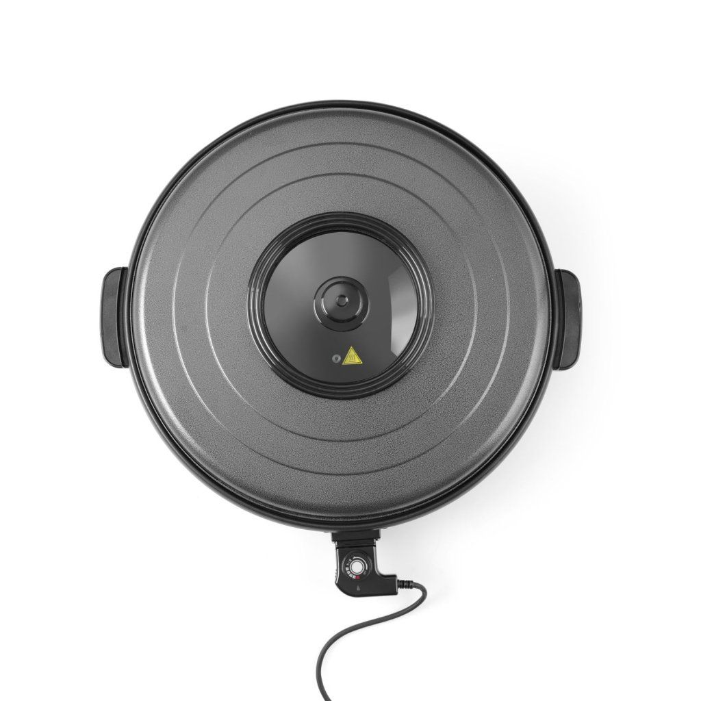 Hliníková s teflonovým povrchem. Odnímatelný termostat s výkonem. Ideální na smaření, pečení, na pizzu.Průhledné víko, izolované úchyty.Doplňkové parametry