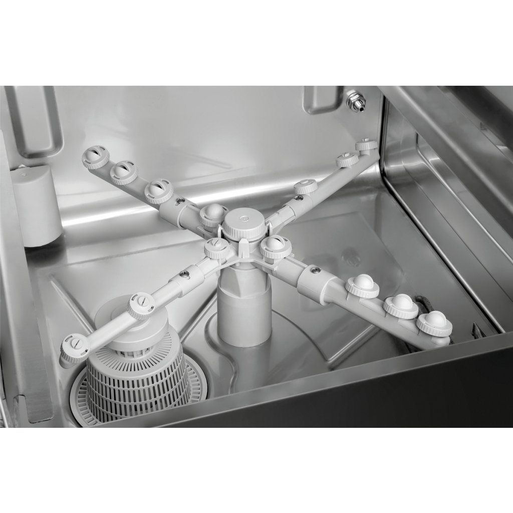 Myčka s flexibilním využitím a funkcí dodatečného studeného oplachu umožňuje rychlou dostupnost umytého nádobí, zejména sklenic. Je ideální pro kavárny, bary a kafeterie.