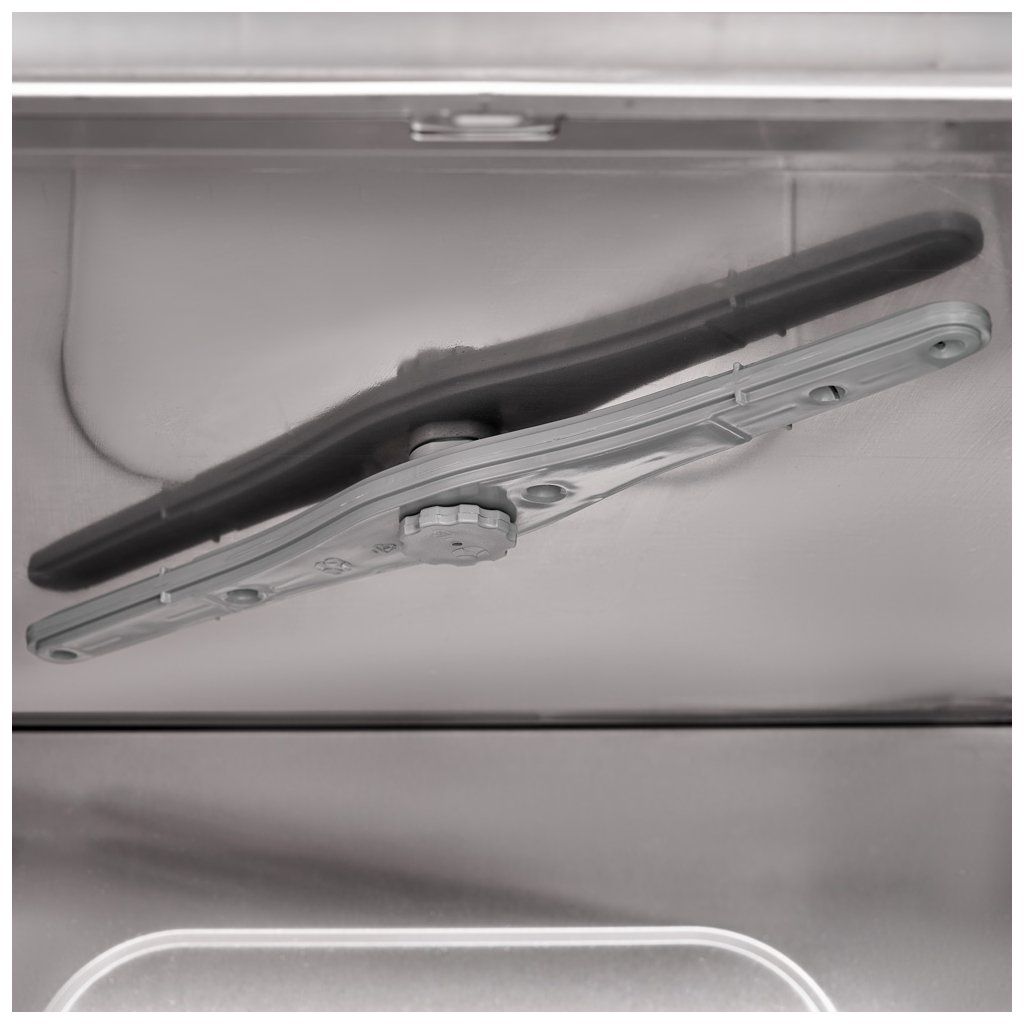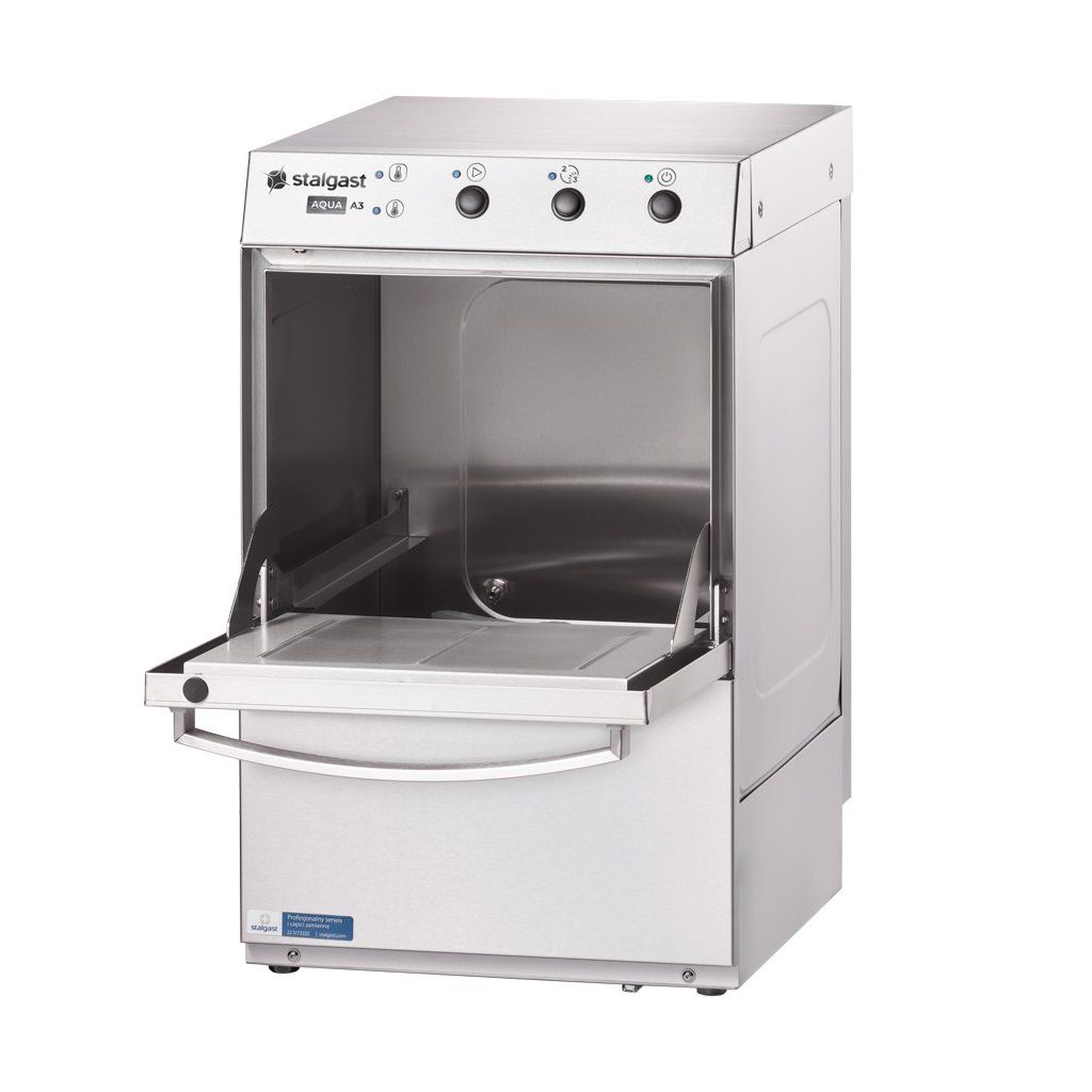Profesionální myčka s funkcí vypařování, Dávkovače mycího a leštícího prostředku jsou součástiBez vypouštěcího čerpadlaelektromechnické ovládání, přizpůsobená pro mytí skla, příborů a malých talířů, výška přízpusobená pro mytí skla a porcelánu - do 300 mm, jelitkový dávkovač čisticího a lešticího prostředku, délka cyklu 120/180 sek., kontrolky pracovní teploty bojleru a komory, 3 ramena (spodní část – mycí a oplachové, horní oplachové), spotřeba vody 2,4 l/cyklus, maximální výška mytého skla 300 mm, koš 400x400 mm, univerzální koš na sklo a nádobka na příbory, zařízení má mít namontován změkčovač vody pro jeho ochranu před vodním kamenem, Stalgast profesionální mycí přípravky zaručují bezproblémový chod myčky.Doplňkové parametry
