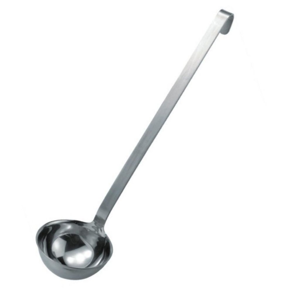 Kvalitní naběračka vyrobená z jednoho kusu oceli, tedy bez různých spár a spojení. Díky závěsnému prohnutí ji lze umístit i na zeď.Naběračka 40 cm
