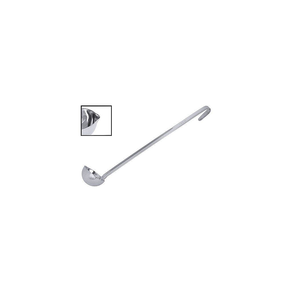Naběračka monoblok s dlouhým úchytem a dvěmi zobáčky je vyrobená z leštěné nerezové oceli.Doplňkové parametry